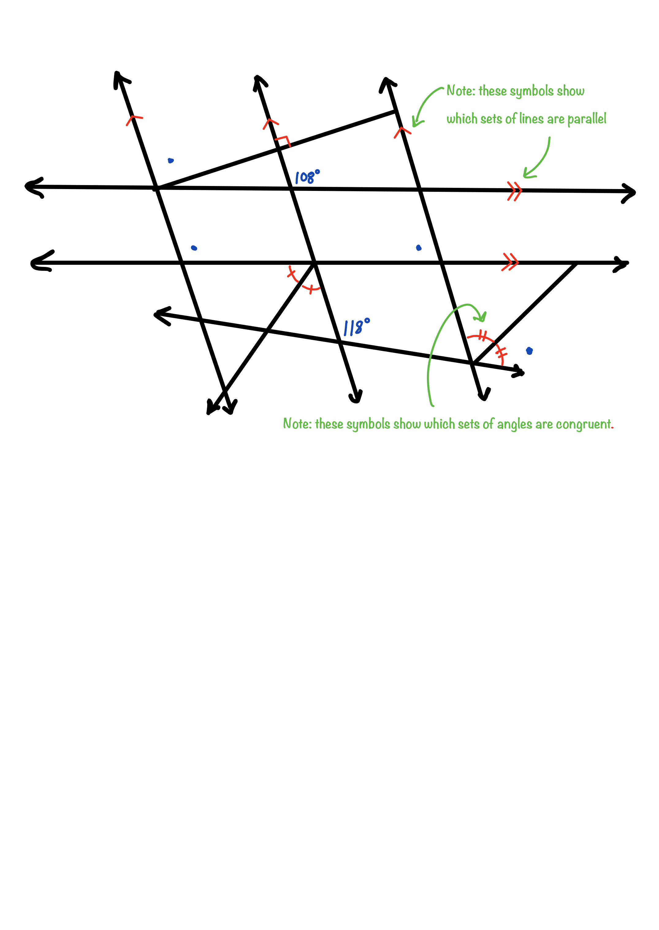 The angles mentioned above that are in the diagram are not congruent. Why not? When will these kinds of angles not be congruent?