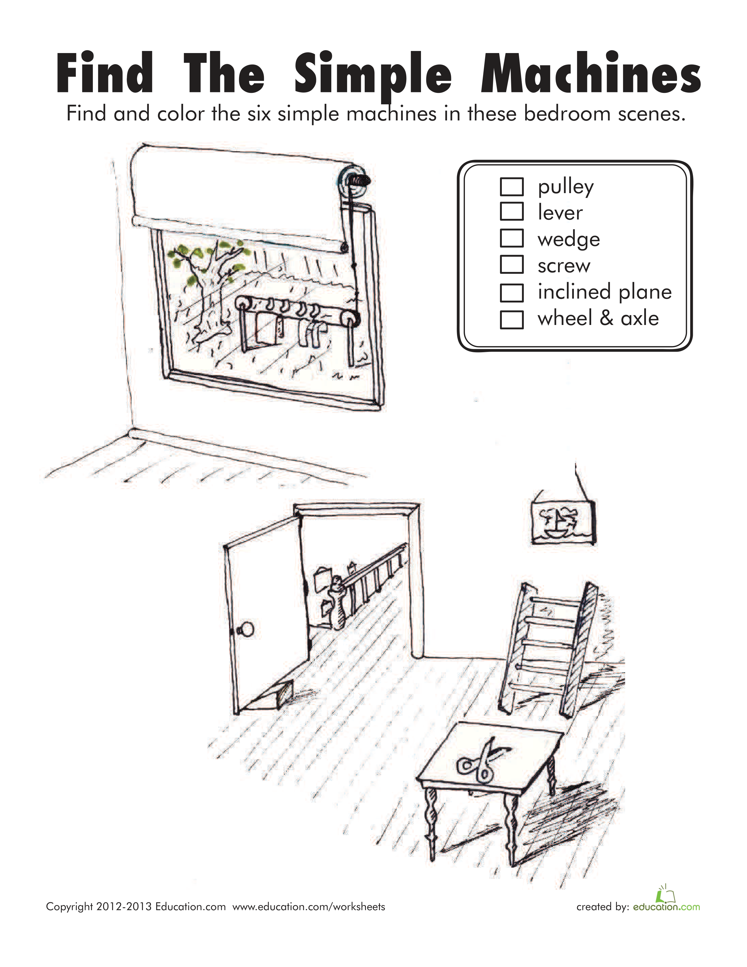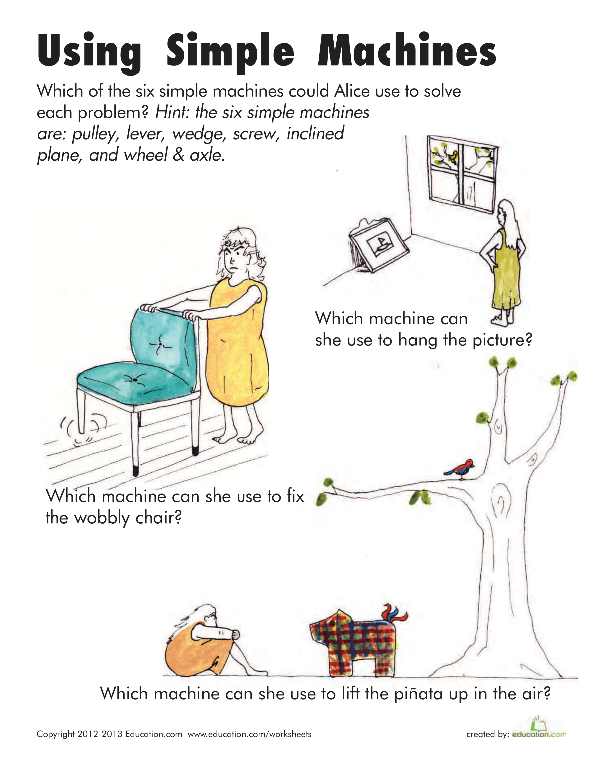 Use the color palette and the text tool to find the simple machines in the diagram.