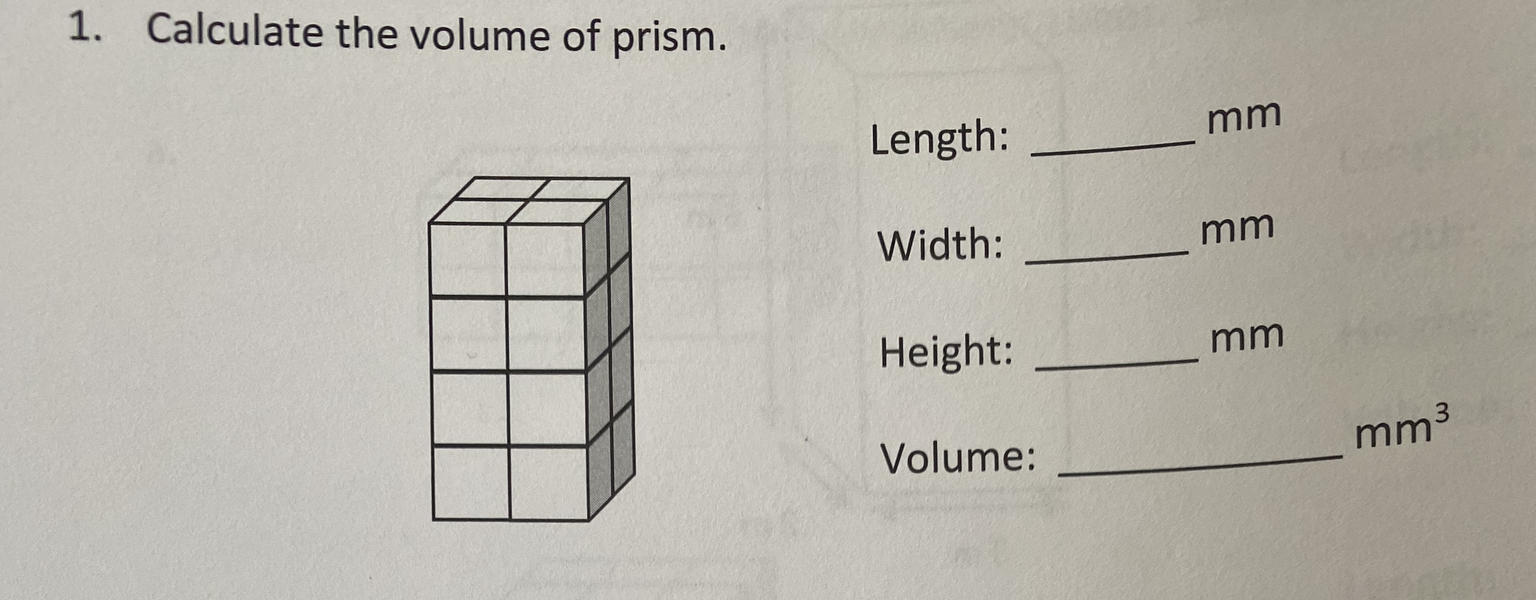 Choose the multiplication sentence that shows how you calculated the volume from question 1. Be sure to include the units.