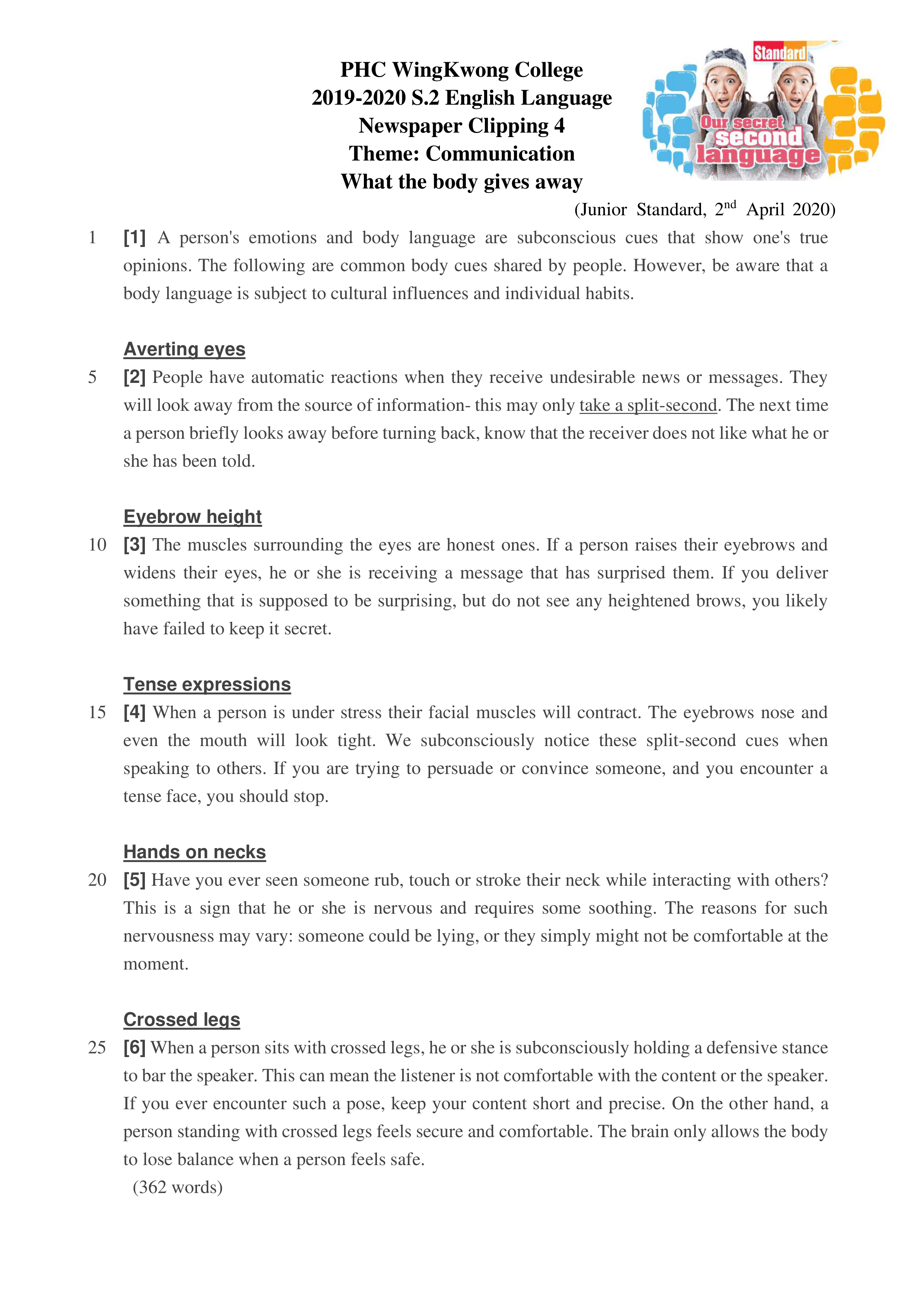 (paragraph 1) The same body language may not mean the same in different countries. T? F? NG?