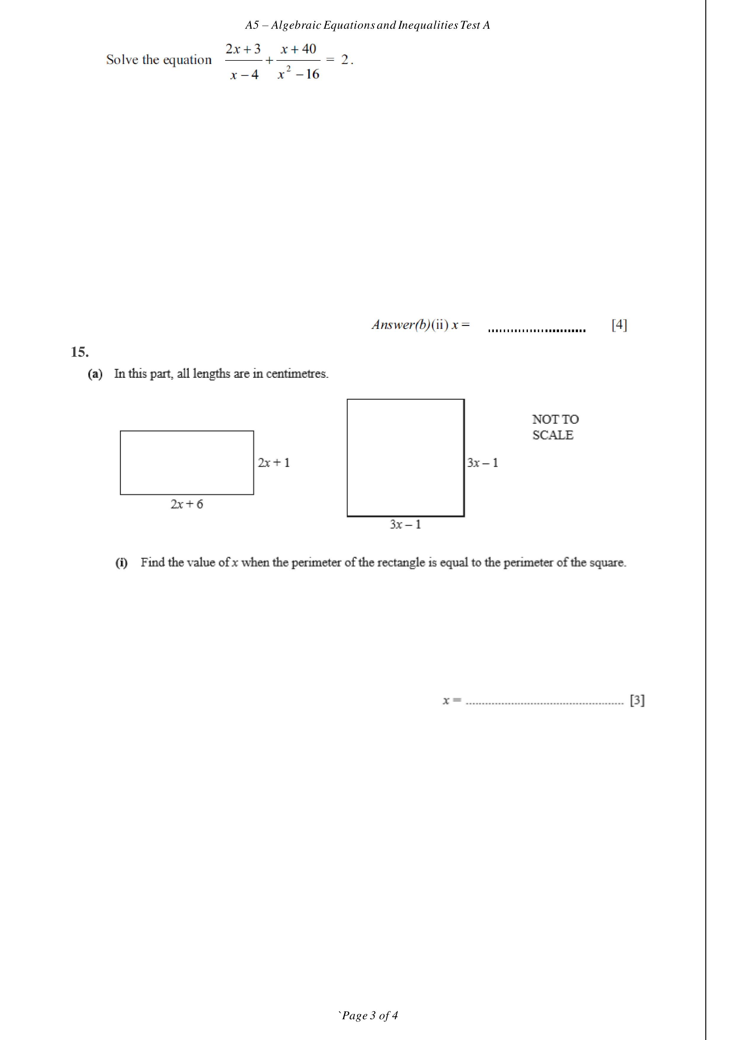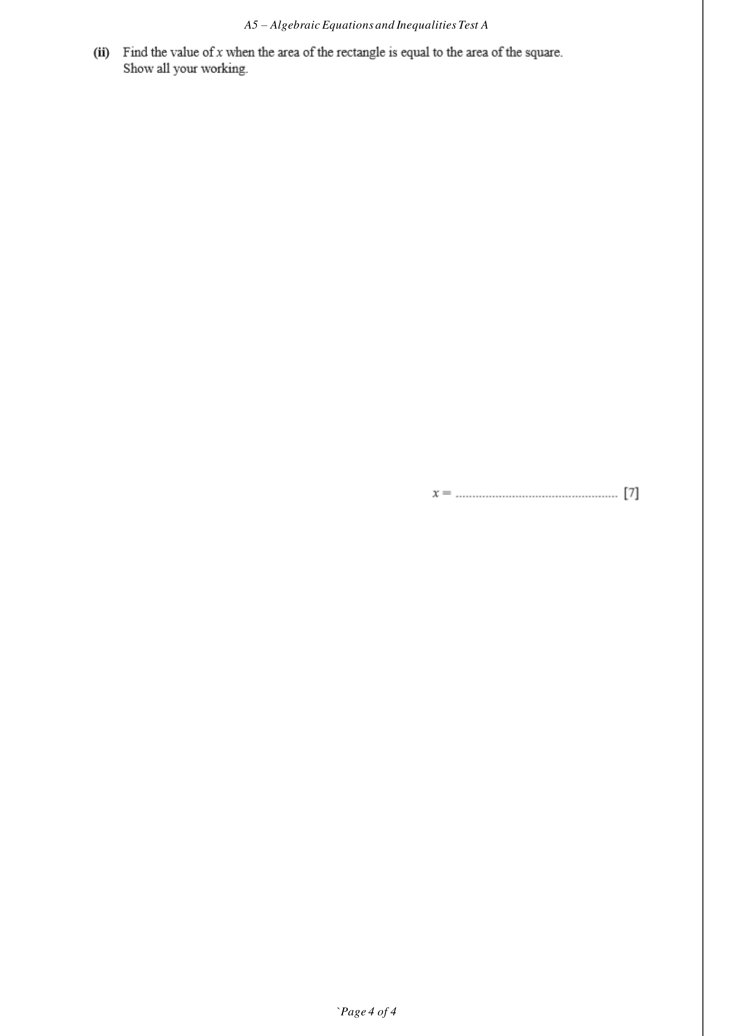 Find the value of x when the area of the rectangle is equal to the area of the square.