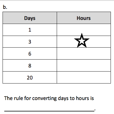 Complete the following conversion table and answer based on where the "Star" is placed.