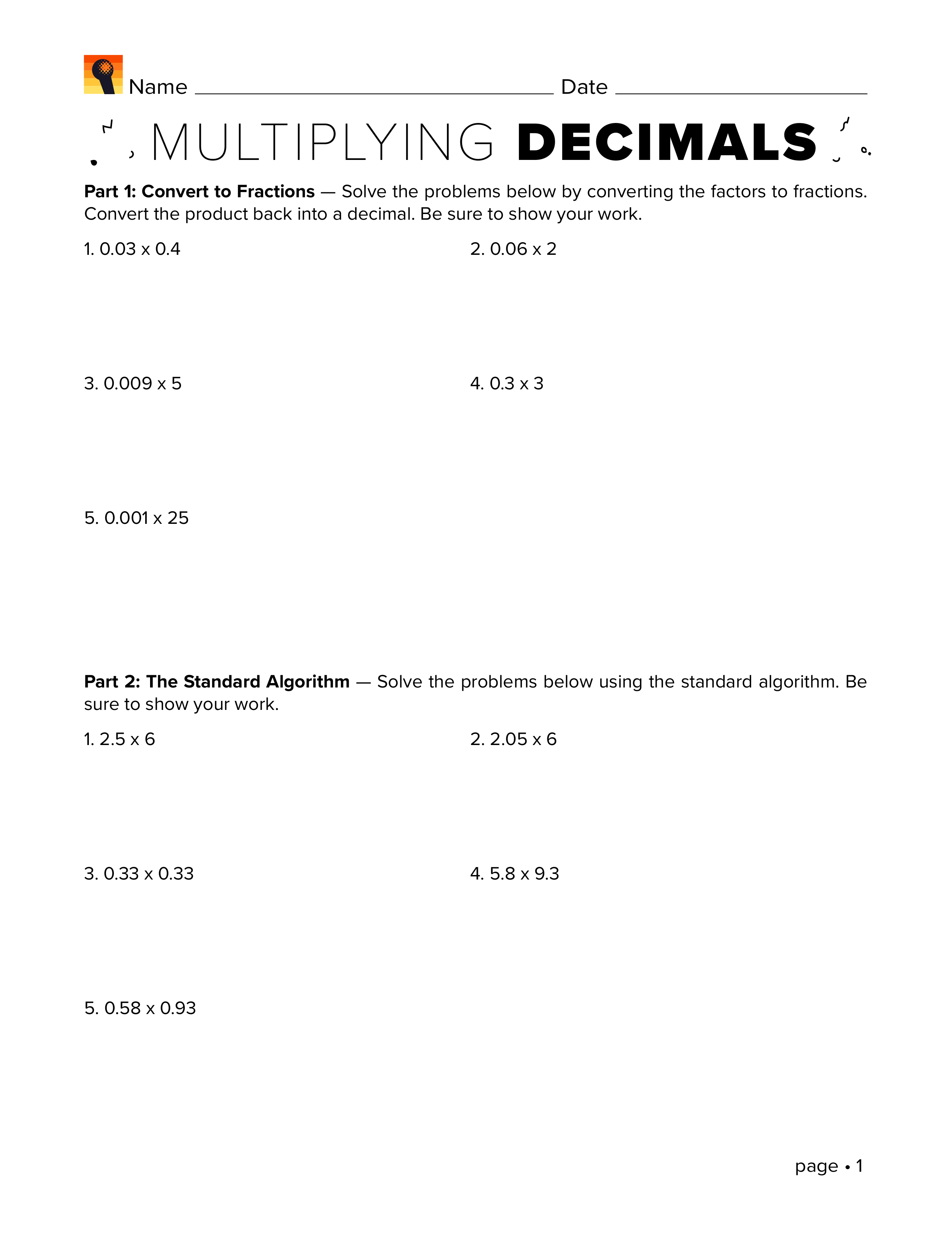 Explain in your own words why the standard algorithm works when you are multiplying decimals.