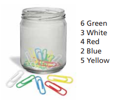 You randomly choose one paper clip from the jar. Find the probability of the event. Not choosing a yellow paper clip.