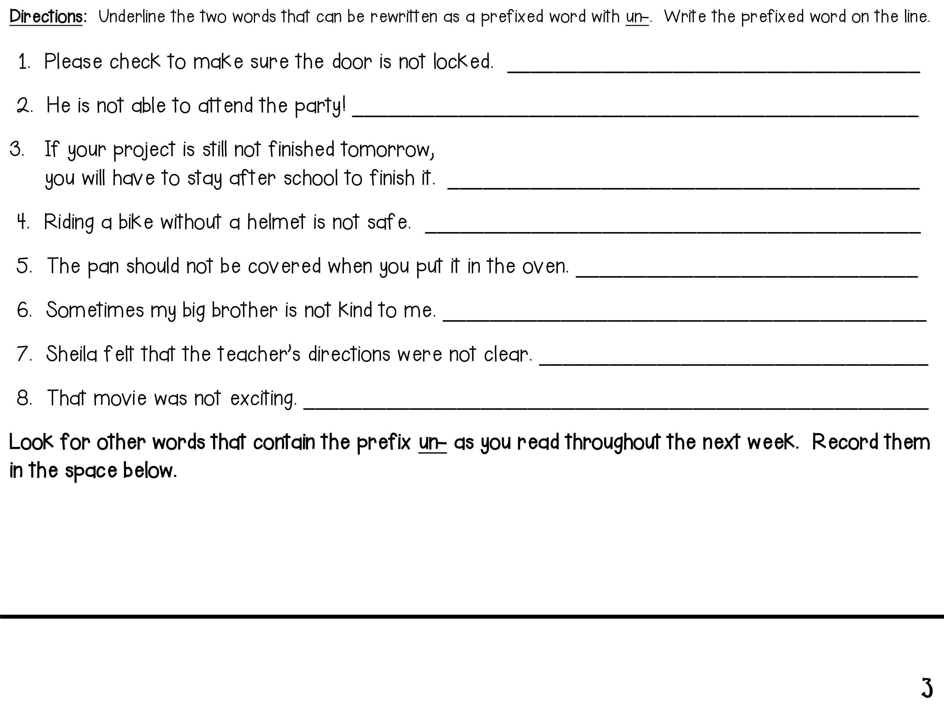 Prefix Practice (un)