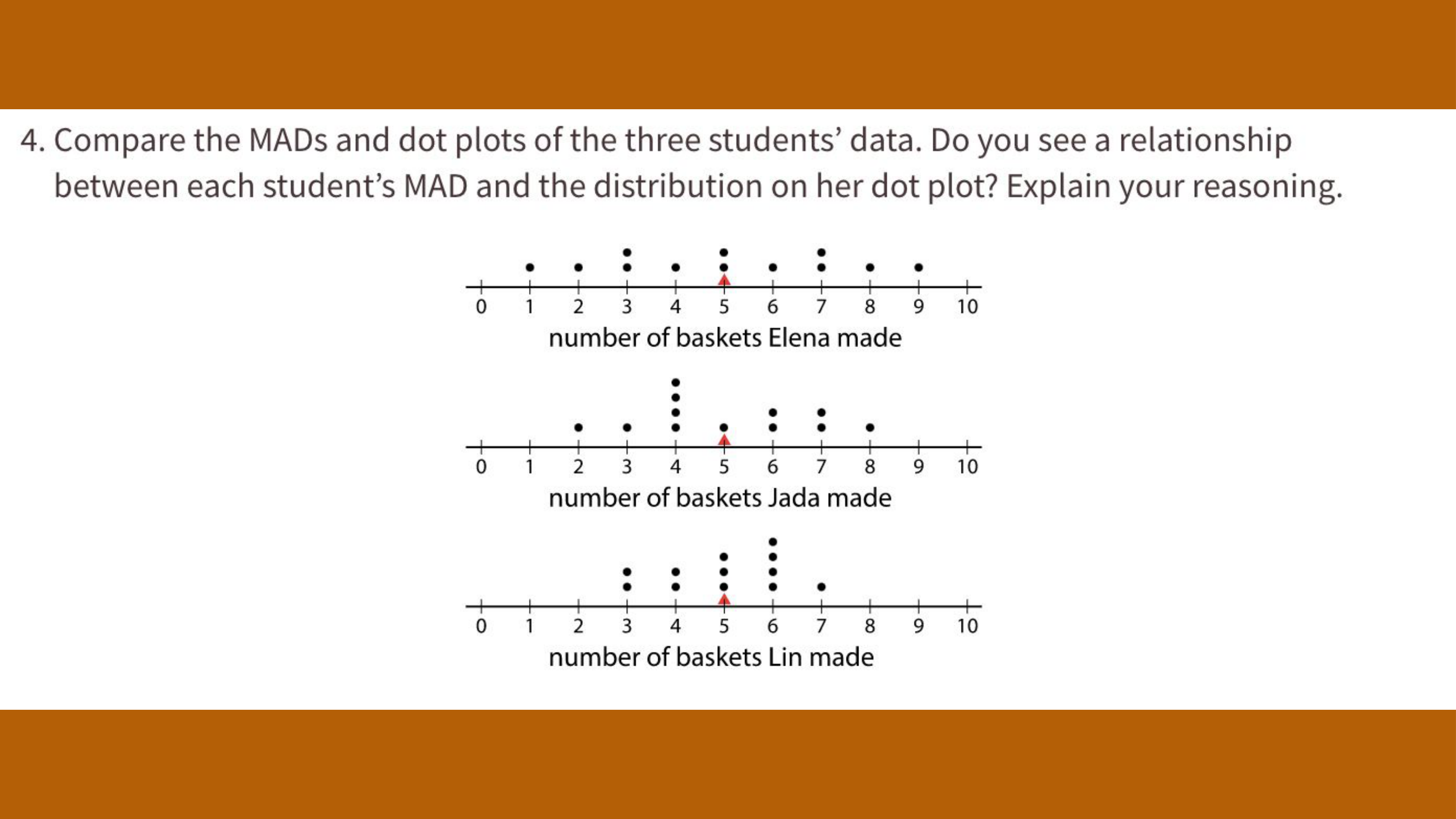 Do you see a relationship between each student's MAD and the distribution on the dot plot? Explain your reasoning.