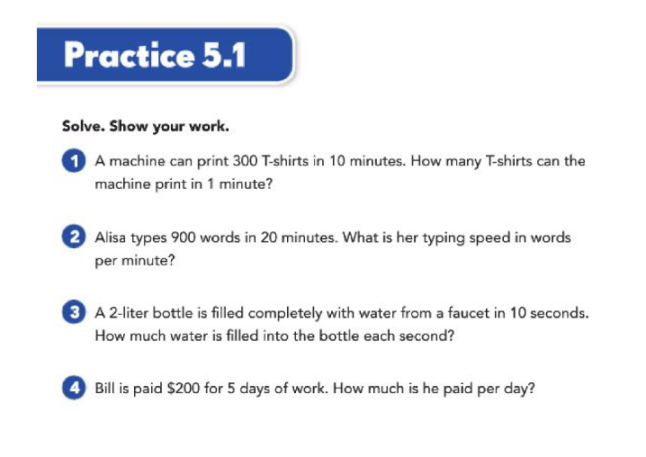 Unit Rates with Proportions 1 - TB p. 161, 166