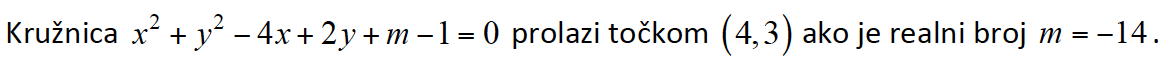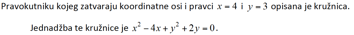 Odredi površinu trokuta što ga određuju ishodište koordinatnog sustava i oba sjecišta kružnice
