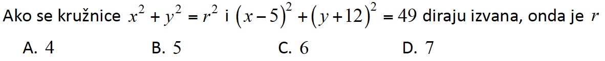 Skiciraj kružnicu polumjera 2 koja dodiruje obje koordinatne osi. Obuhvati skicom sve slučajeve.