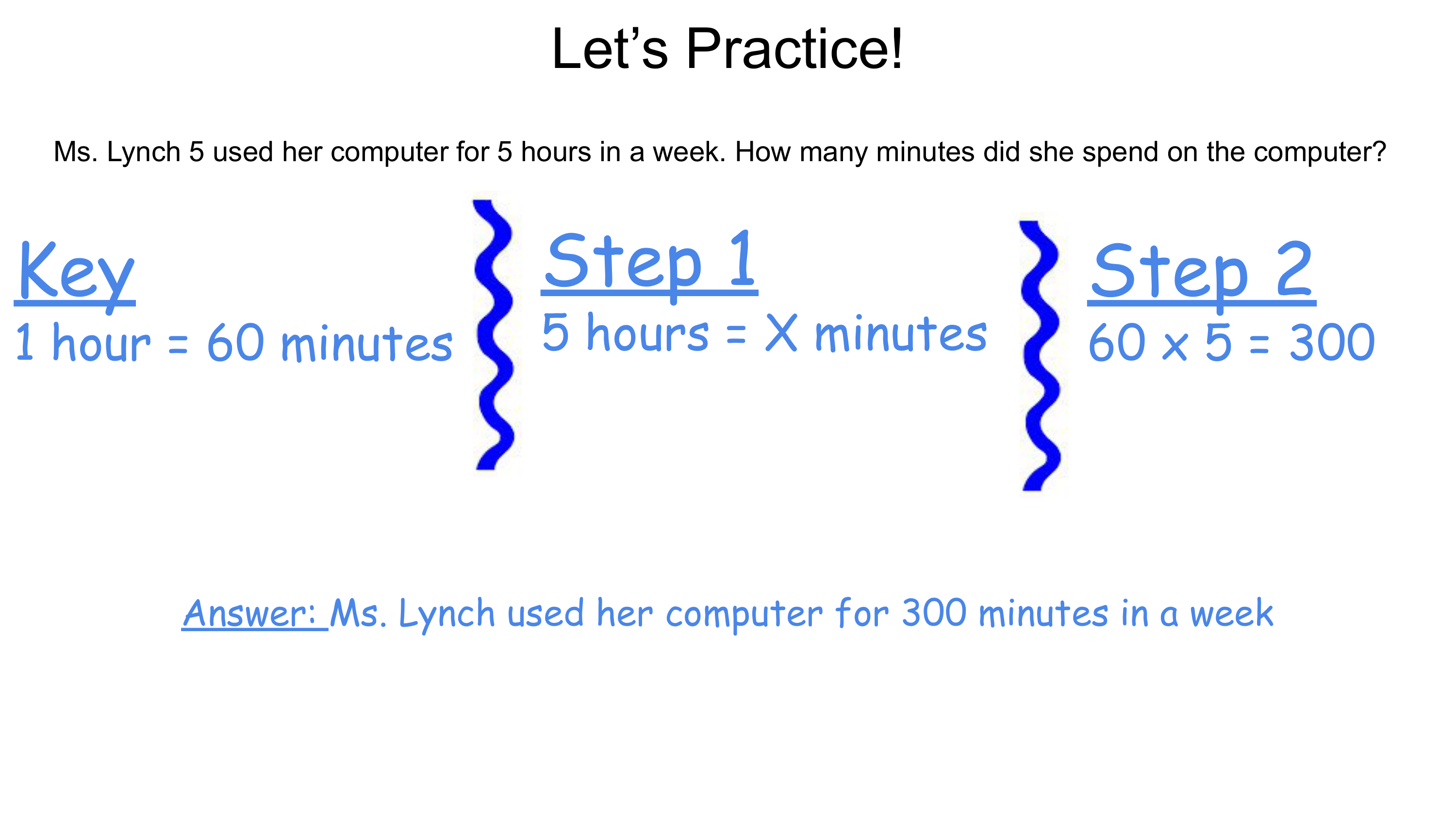 1. Isla used her computer for 5 hours. How many minutes did she spend on the computer?