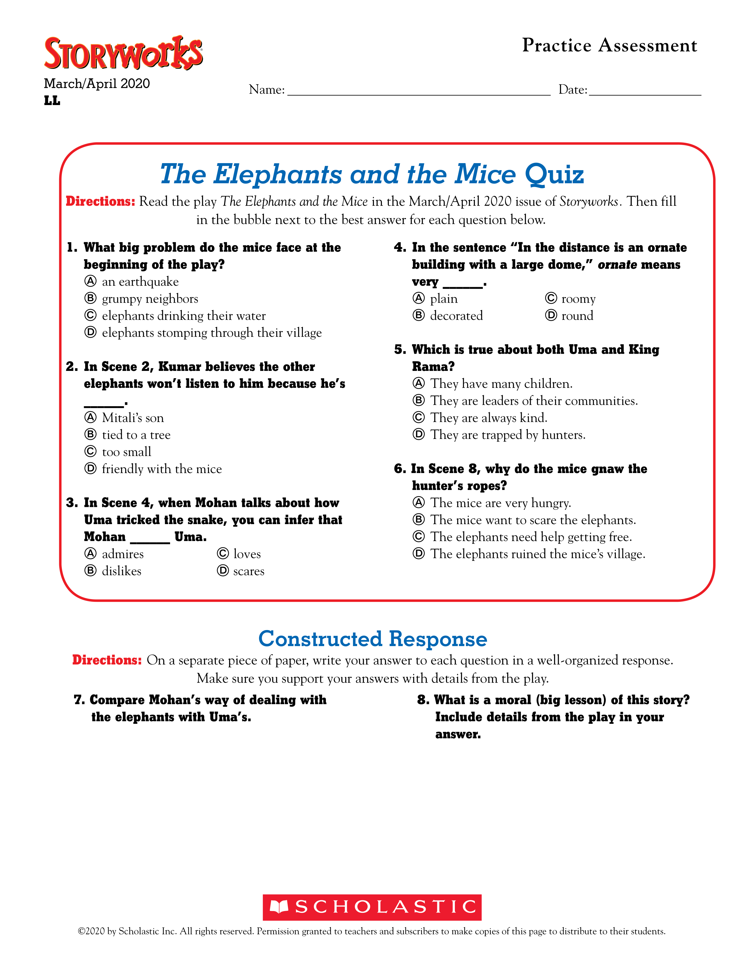 May 4-7 "The Elephants and the Mice" Quiz Acquarelli