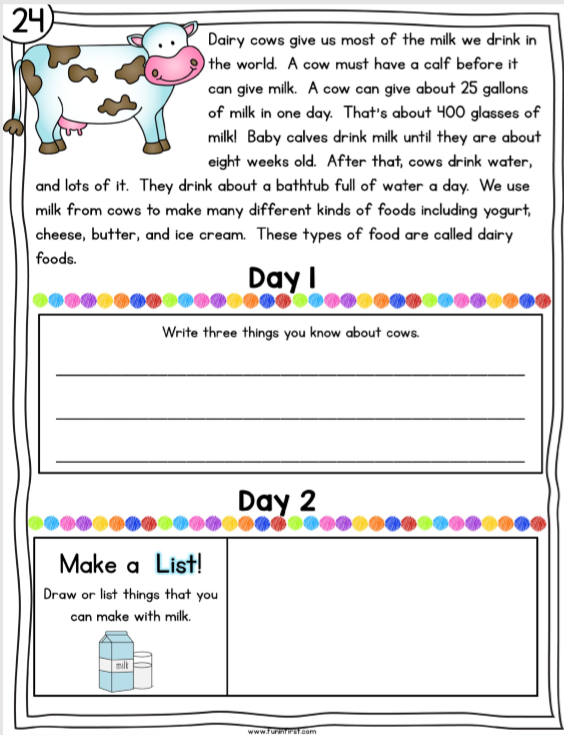Fill in the blank with the correct word.A cow can give about 25 ___ of milk in one day.