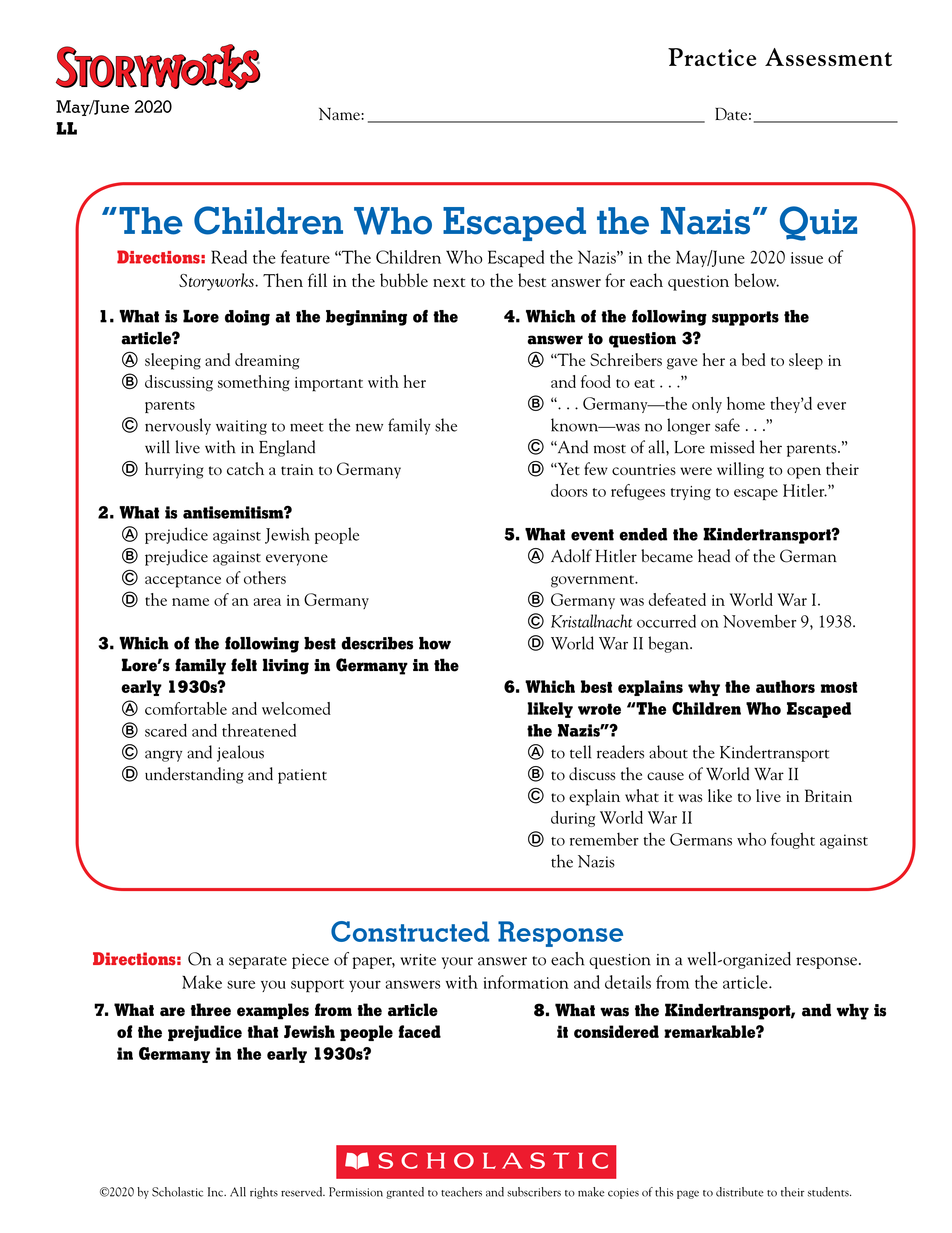 May 11-15 Quiz "The Children Who Escaped the Nazis" Acquarelli