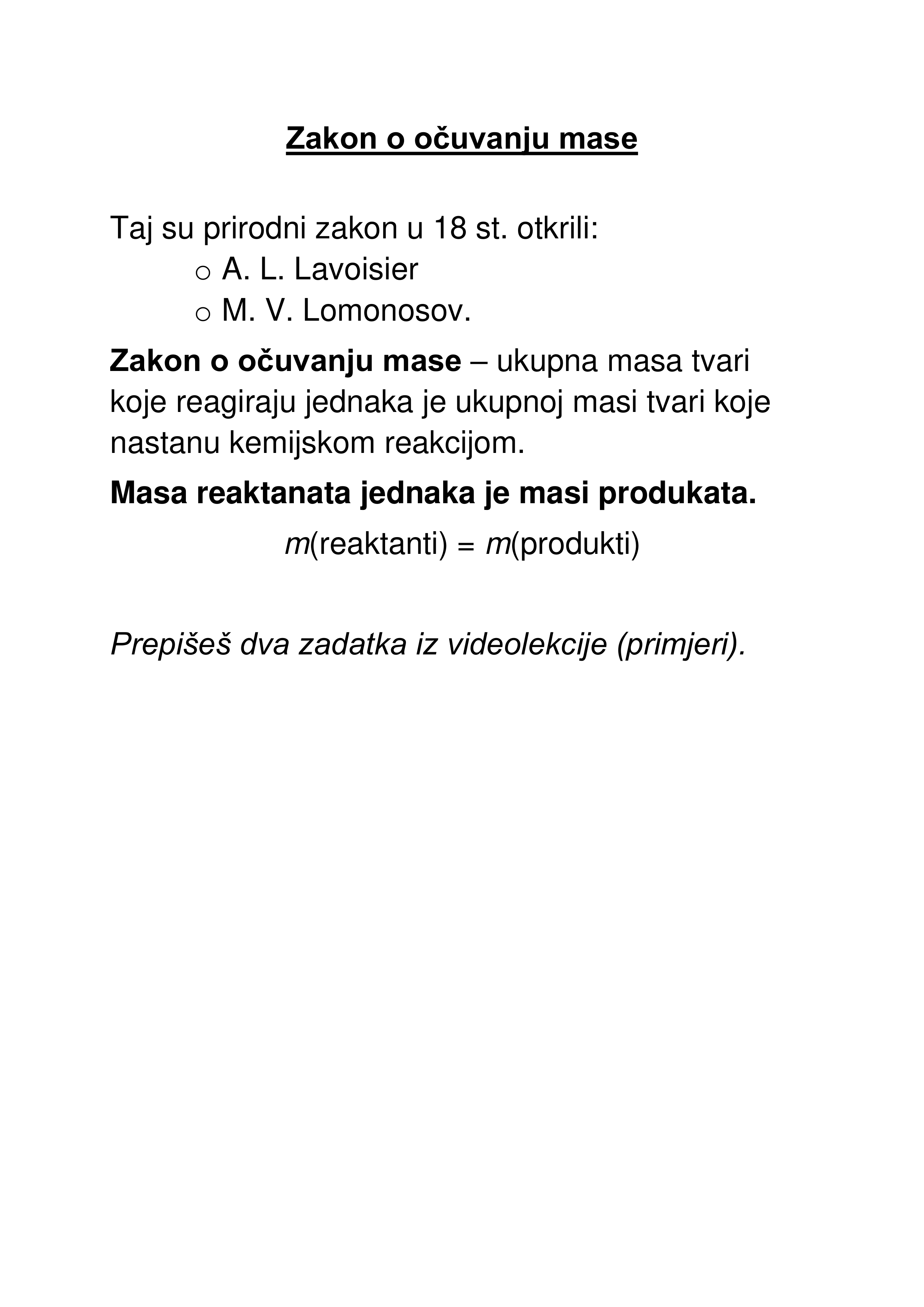 Zakon o očuvanju mase