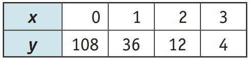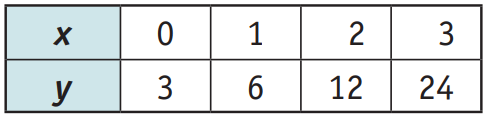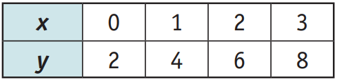 Provide an equation to show the relationship between x and y for the set of data represented by the table.