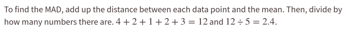 Calculate the mean absolute deviation (MAD) of the data. Explain or show your reasoning
