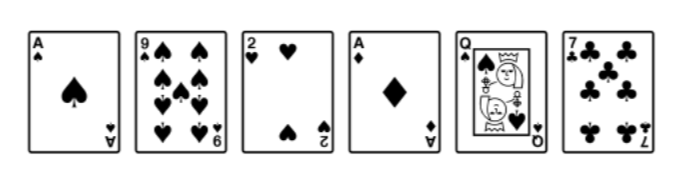 The following cards are used in a game. If each of the cards is turned over and shuffled, then how much of a greater chance is there in drawing a spade over drawing a 7?