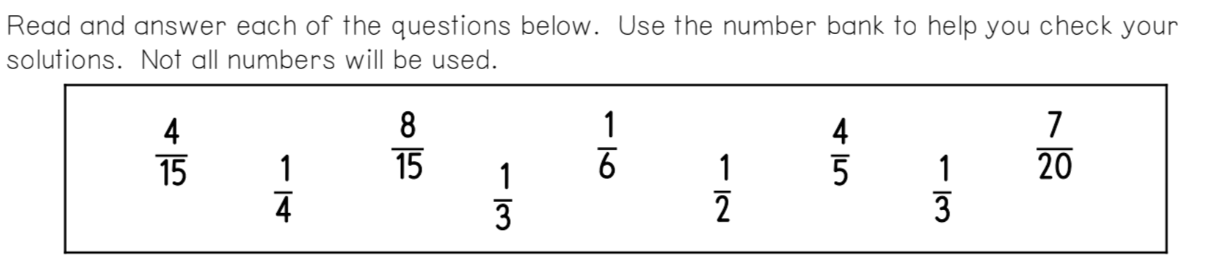 USE THE NUMBER BANK TO HELP YOU CHECK YOUR SOLUTIONS. NOT ALL NUMBERS WILL BE USED.