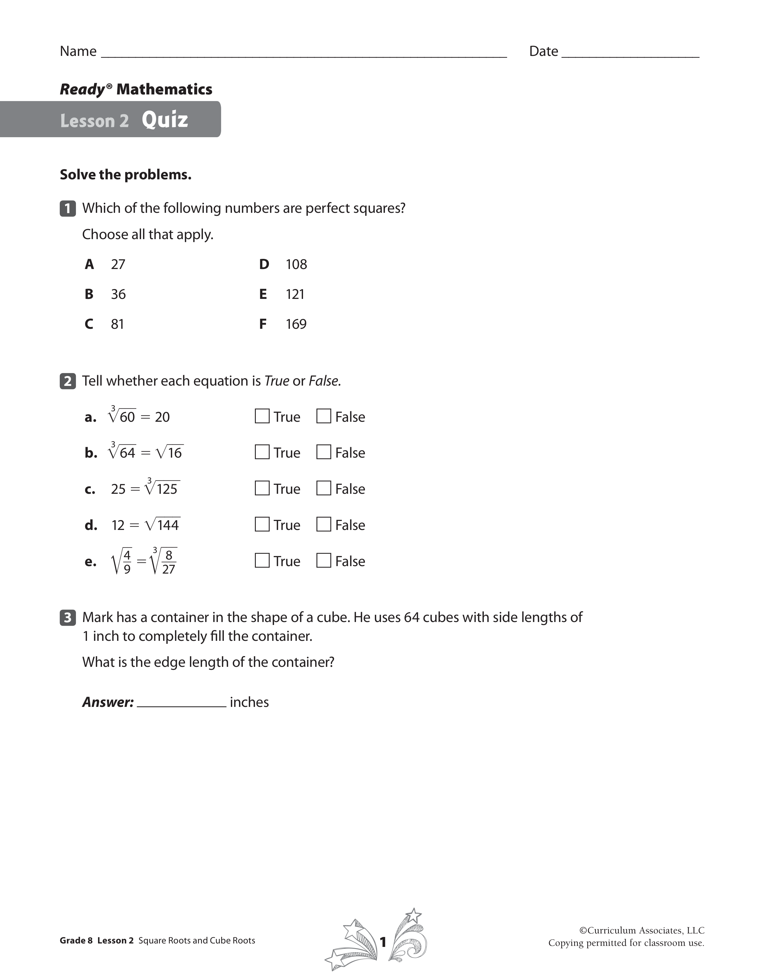 Square and Cube Roots Test