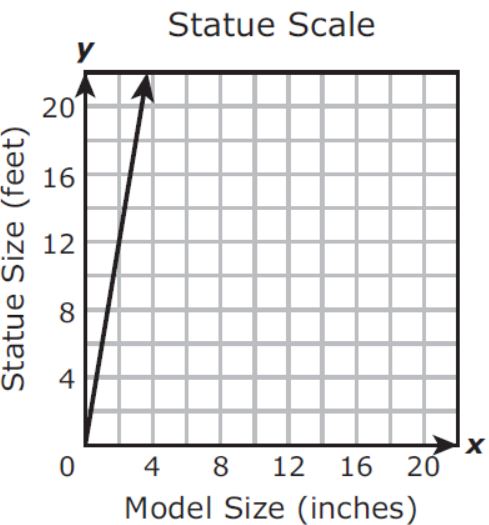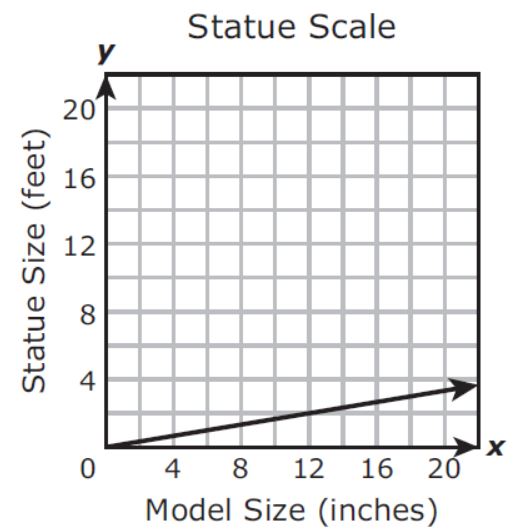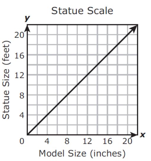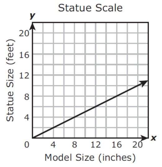 An artist is making a scale model of a statue. On the model 2 inches represents 1 foot on the actual statue. Which graph best represents this relationship?
