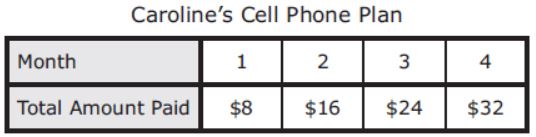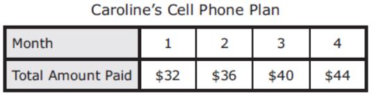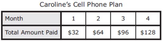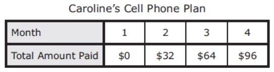Caroline’s cell phone plan costs $32 per month. Which table shows the sum of the amounts