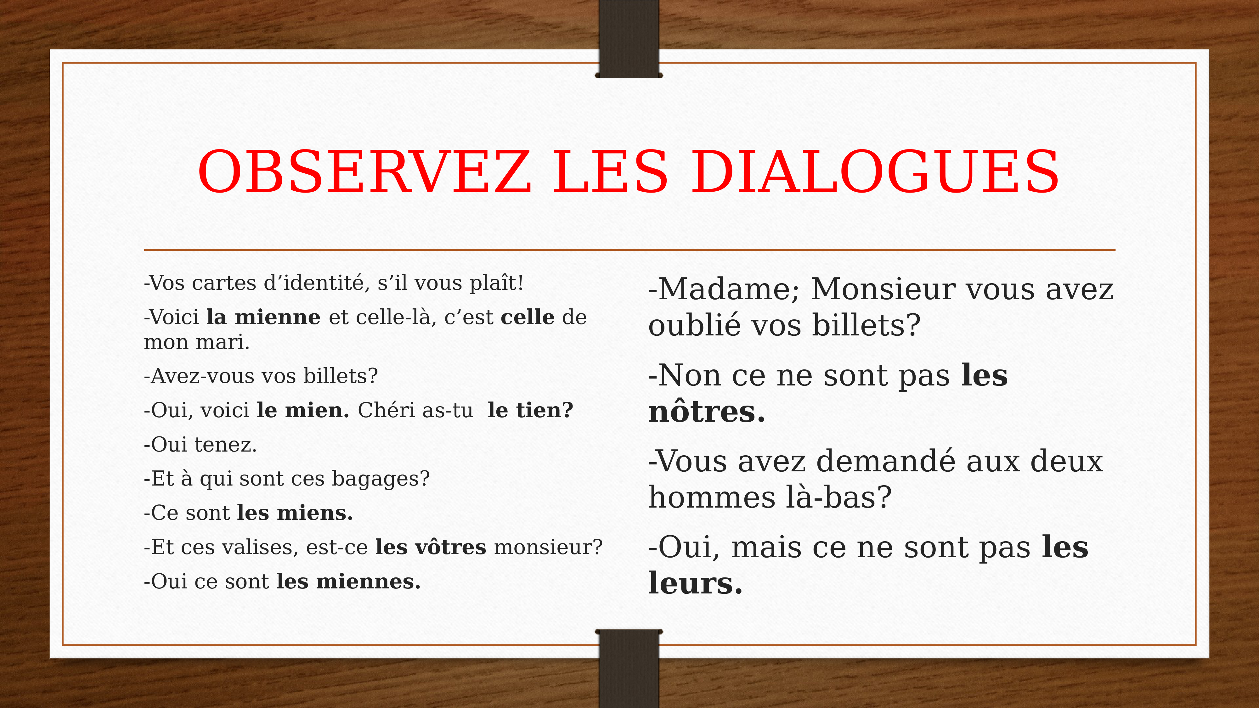 Choisis le pronom possessif qui convient.Ce sont vos voitures? Oui, ce sont ....