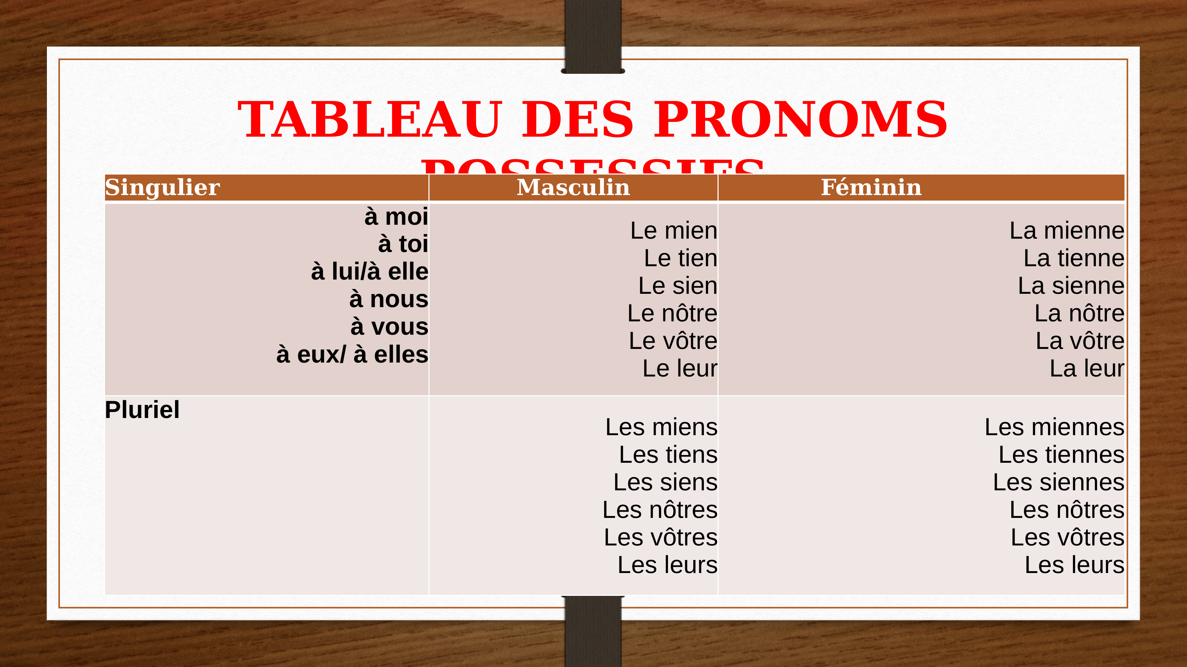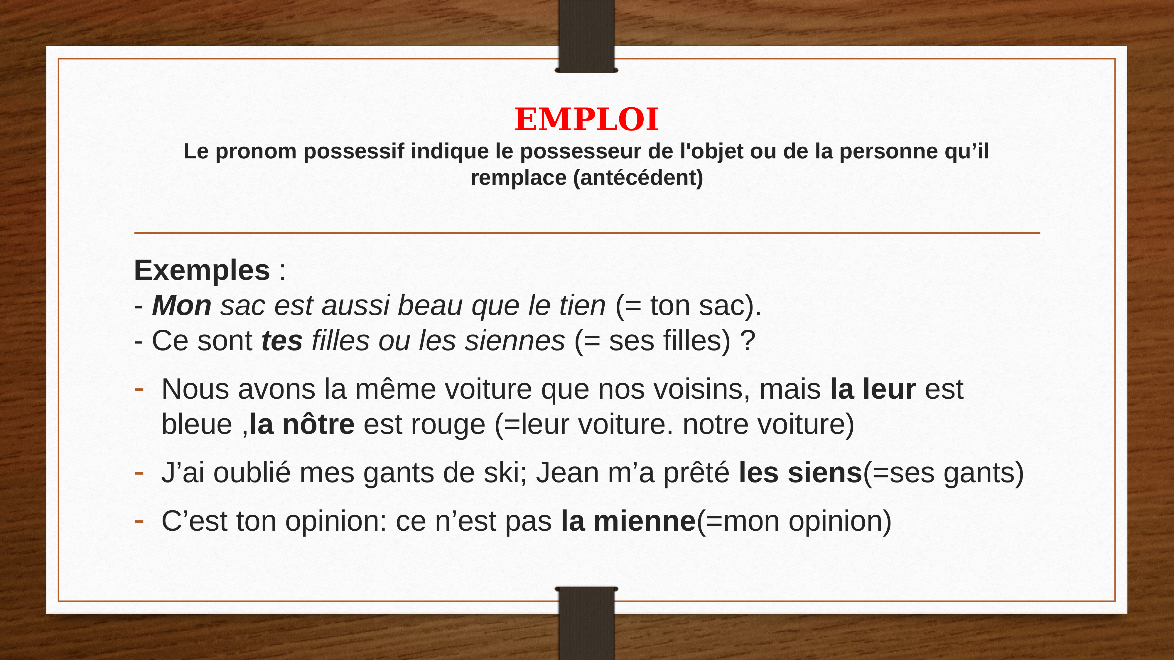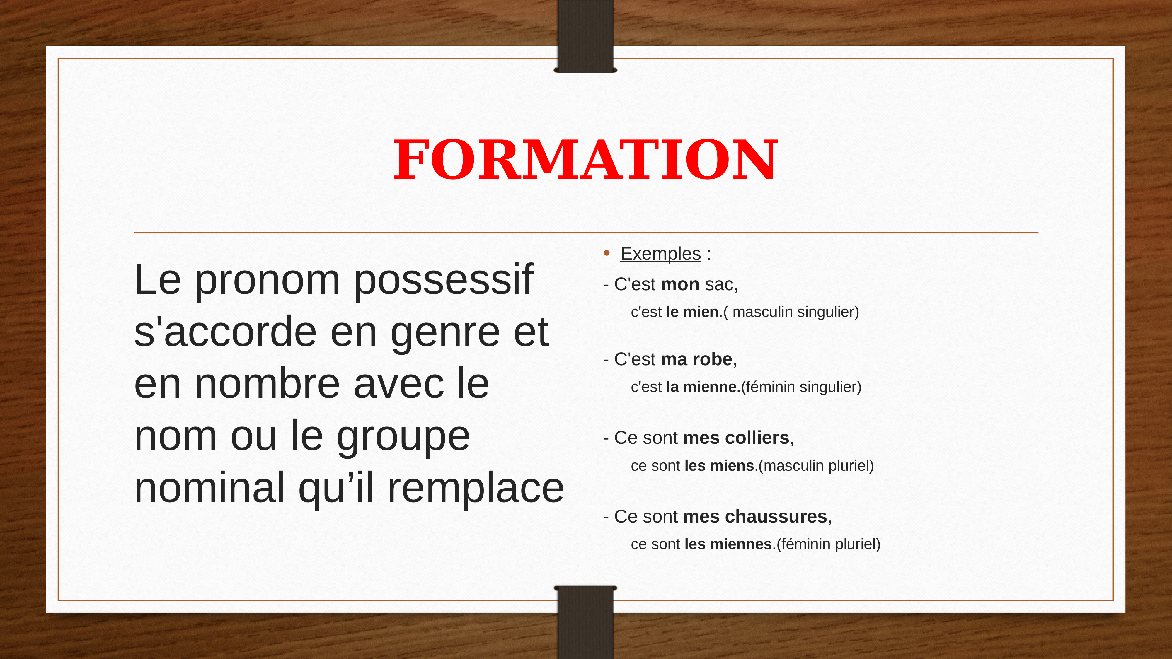 Choisis le pronom possessif qui convient.C'est mon manteau. C'est.........................................