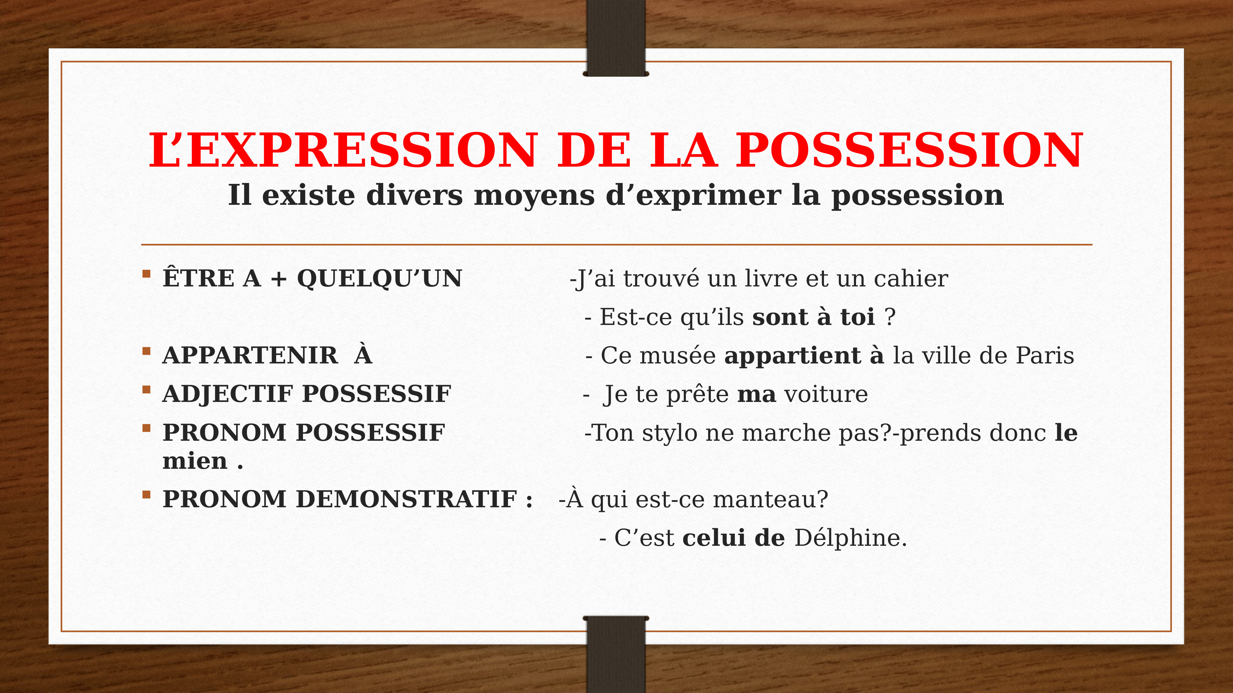 Choisis le pronom possessif qui convient.Ce sont les gants de Paul. C'est................................................
