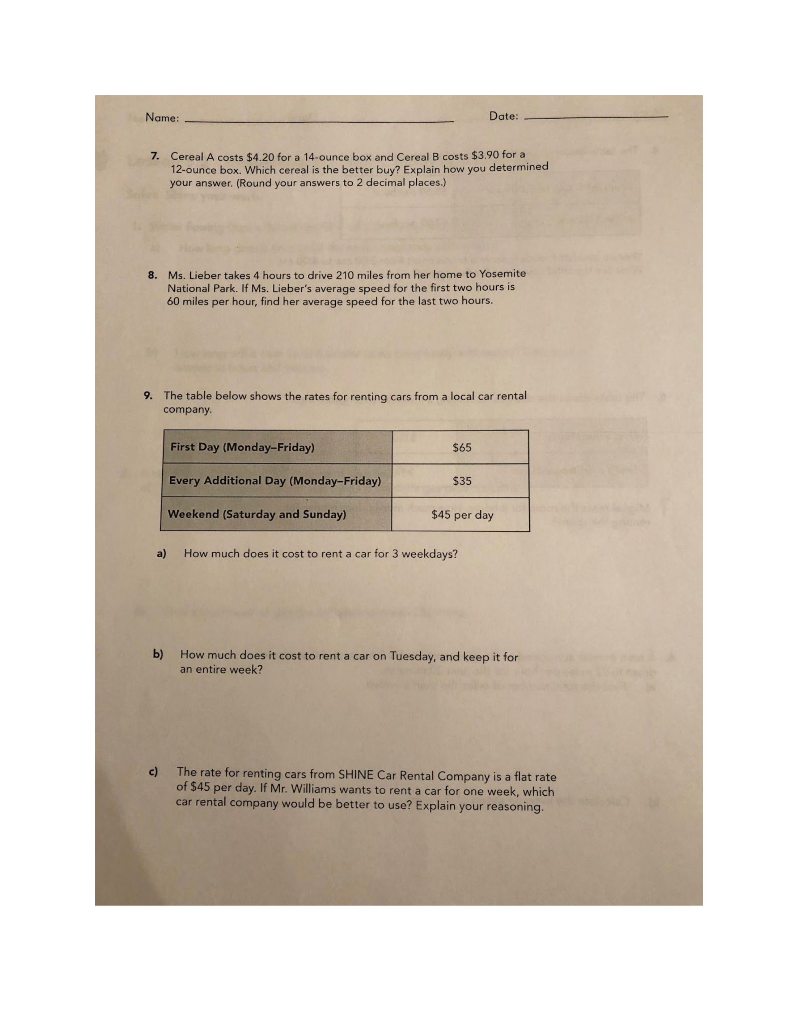 Should Mr. Williams rent with the local car rental company (prices in table) OR Shine Car Rental Company (price in #7)?