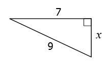 Find the Length of the missing side (leg) using the Pythagorean Theorem. DO NOT use units!