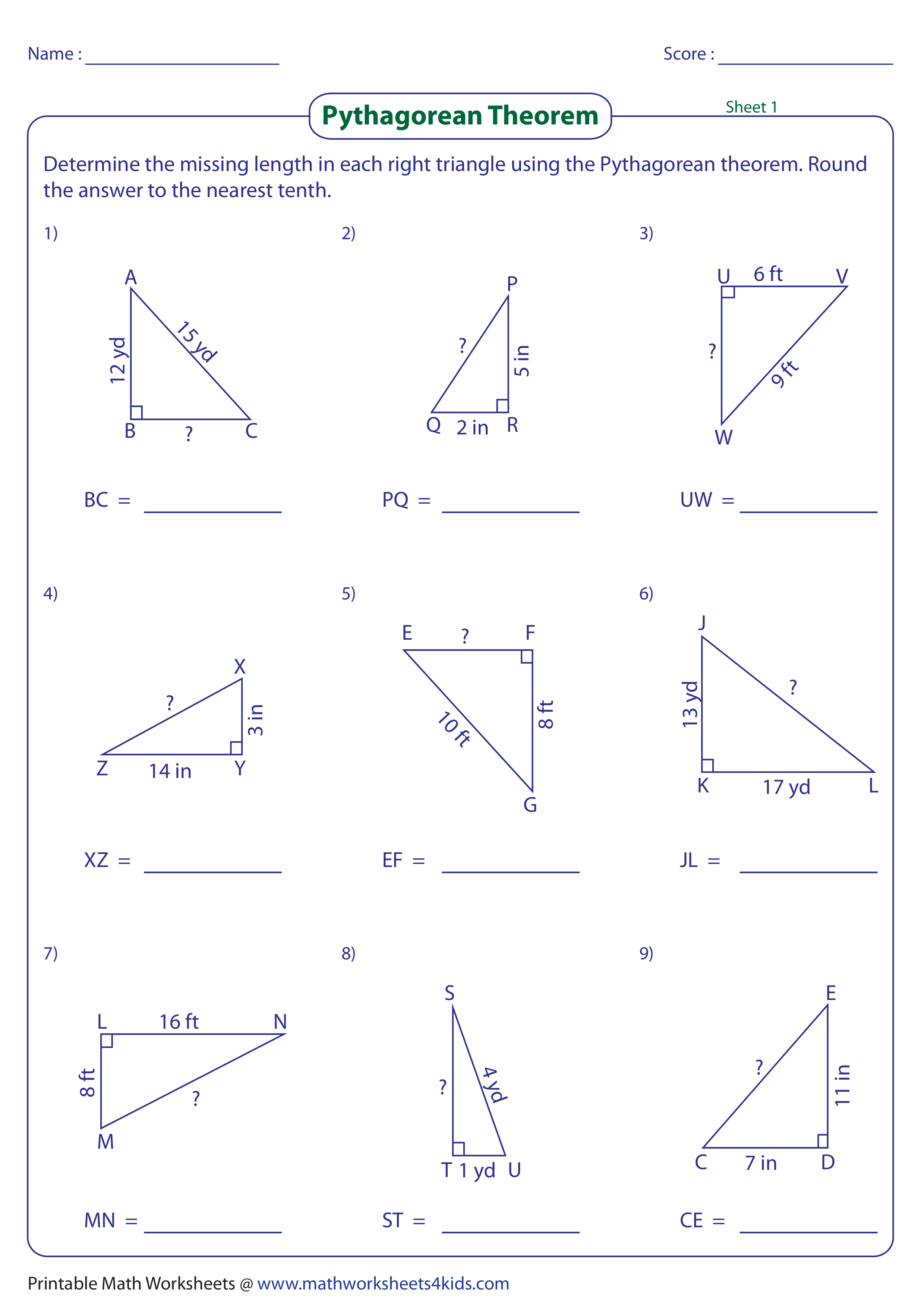 Geometry Week 5 Day 4 Pythagorean Theroem Practice