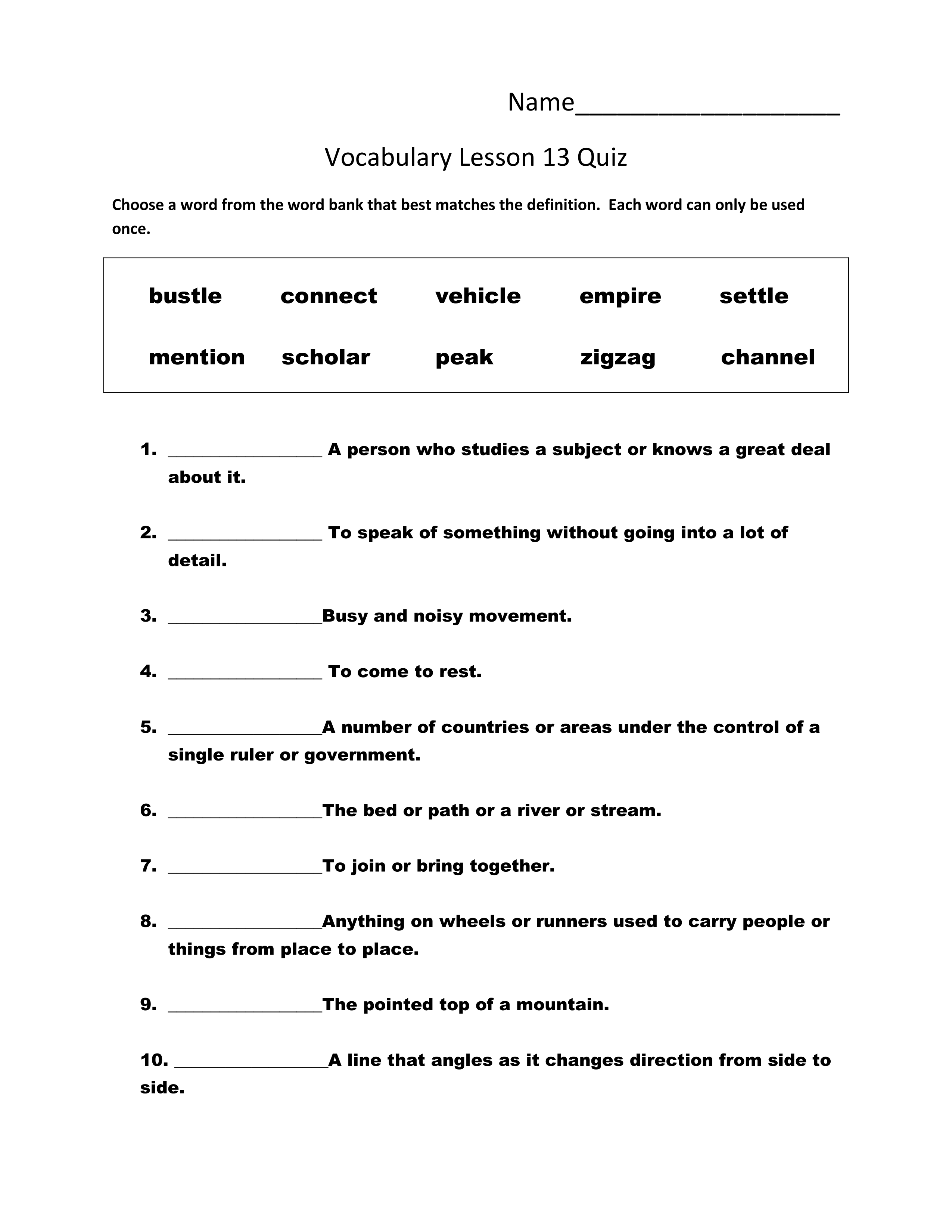 Choose a word from the word bank that best matches the definition. Each word can only be used once. Spelling counts.