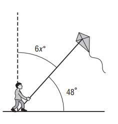 A kite string makes an angle of 48˚ with respect to the ground as shown below. The dashed line is vertical and the ground is horizontal. Select the correct equation below to find x.