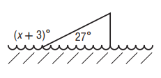 A ski jump makes an angle of 27˚ with respect to the water as shown below. Select the correct equation to solve for x in the image below.