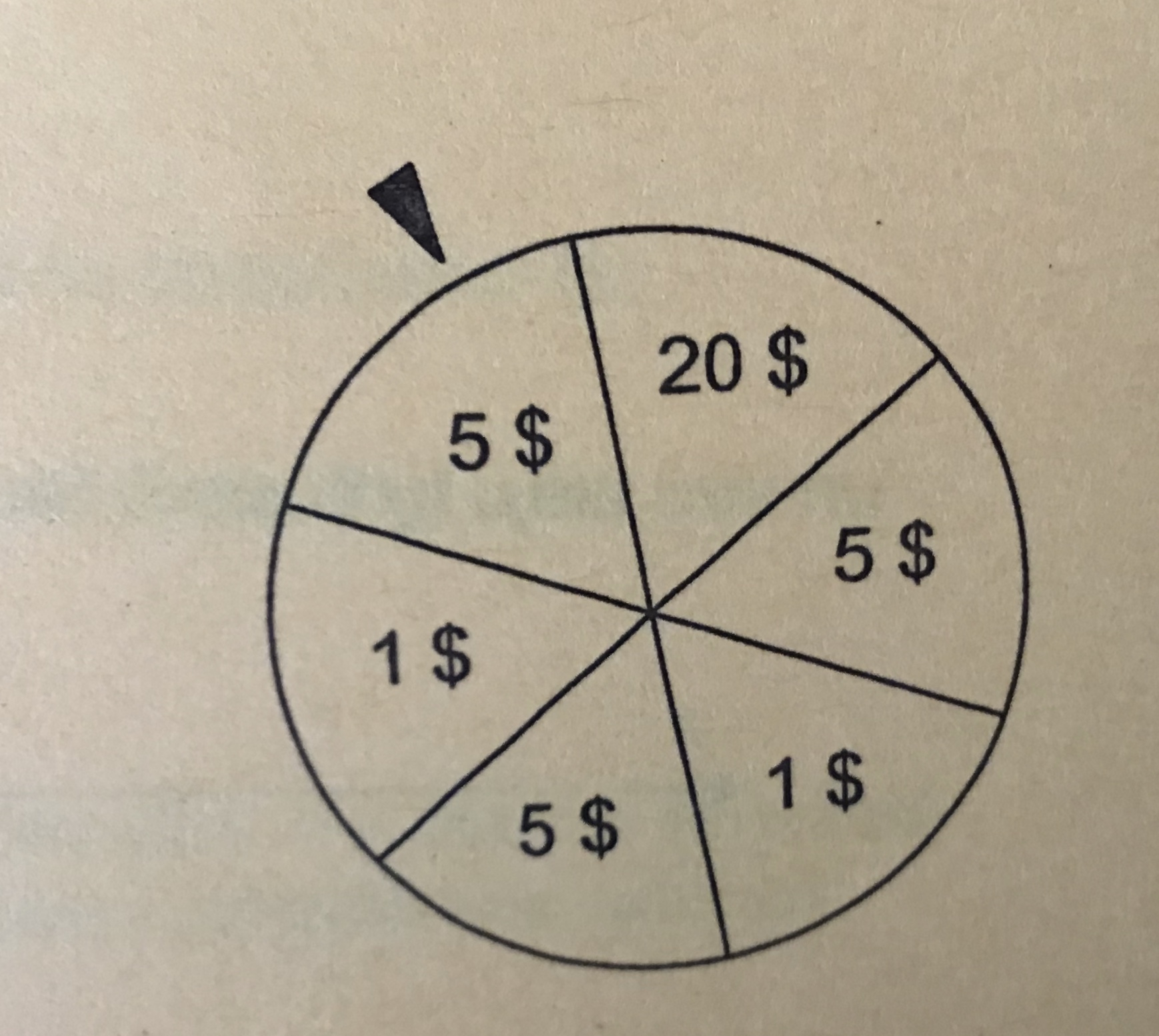 Lorsque Juju tourne la roue, il reçoit la somme d'argent inscrite sur le secteur que le pointeur indique.