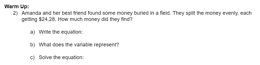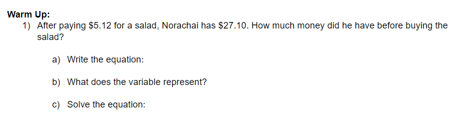 Solve the equation: (use the equation from question 1)
