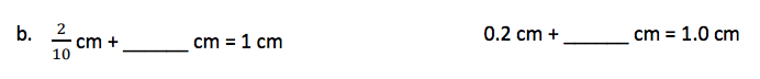 Fill in the blank to make the sentence true in both fraction form and decimal form.
