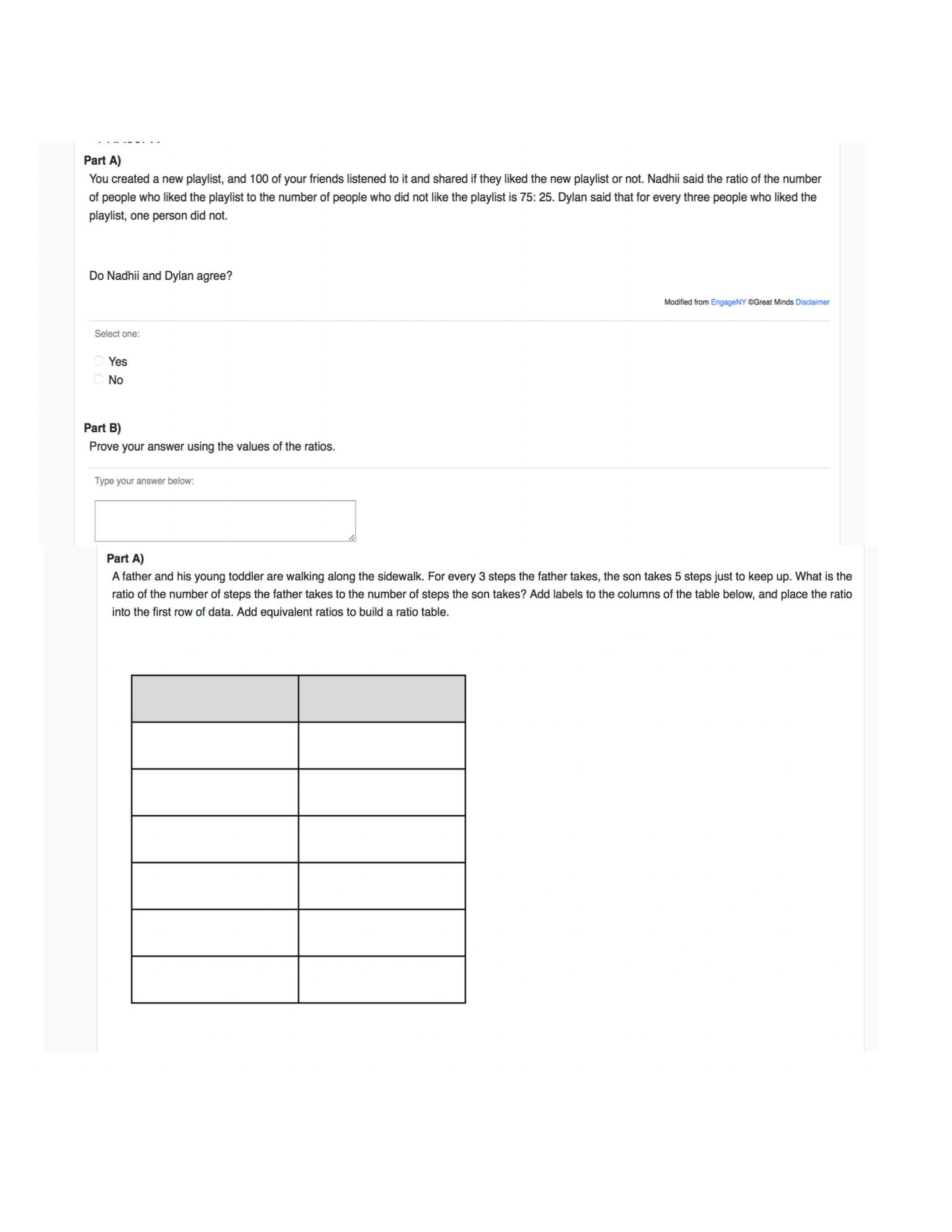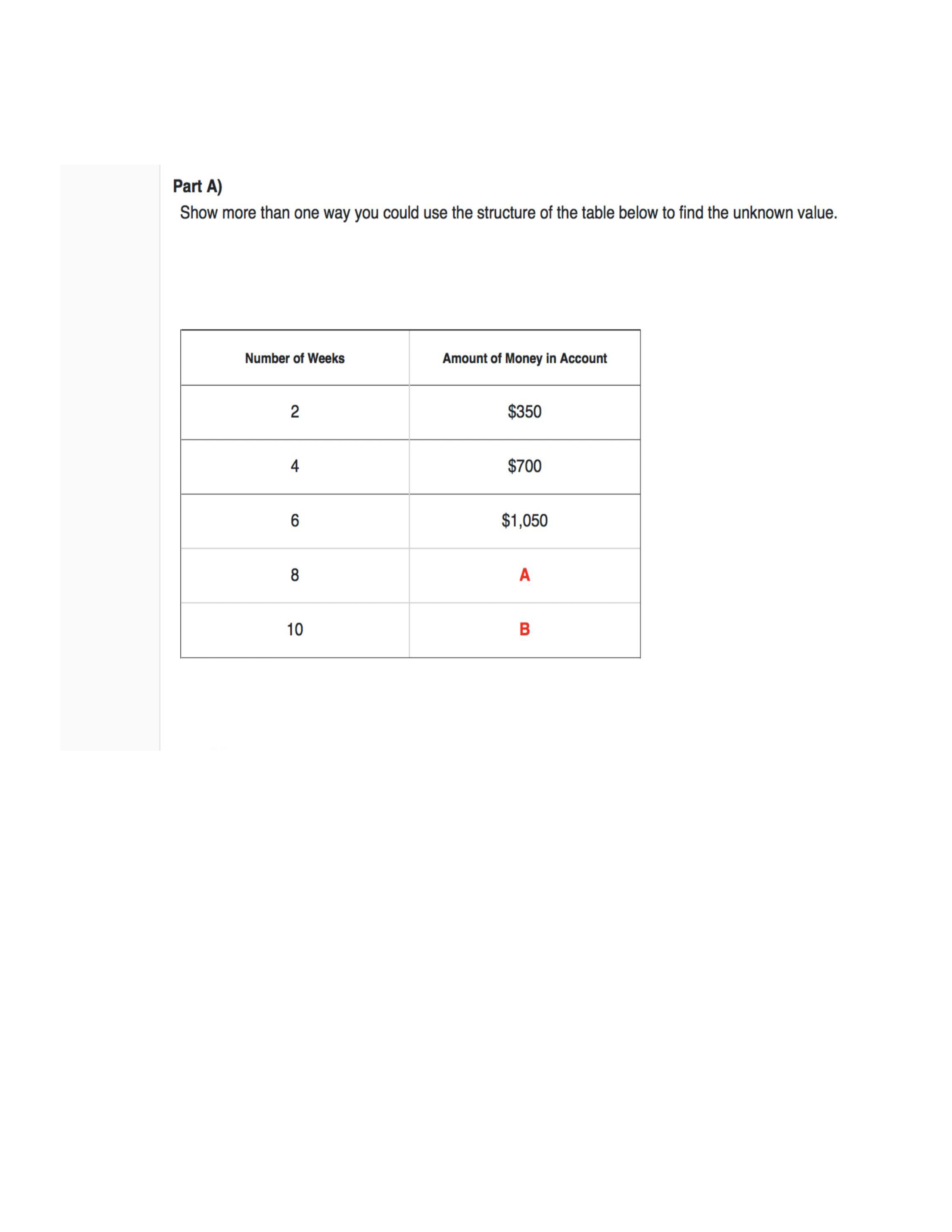 Show how you can use the table and what you know about ratio principles to help find both A and B.