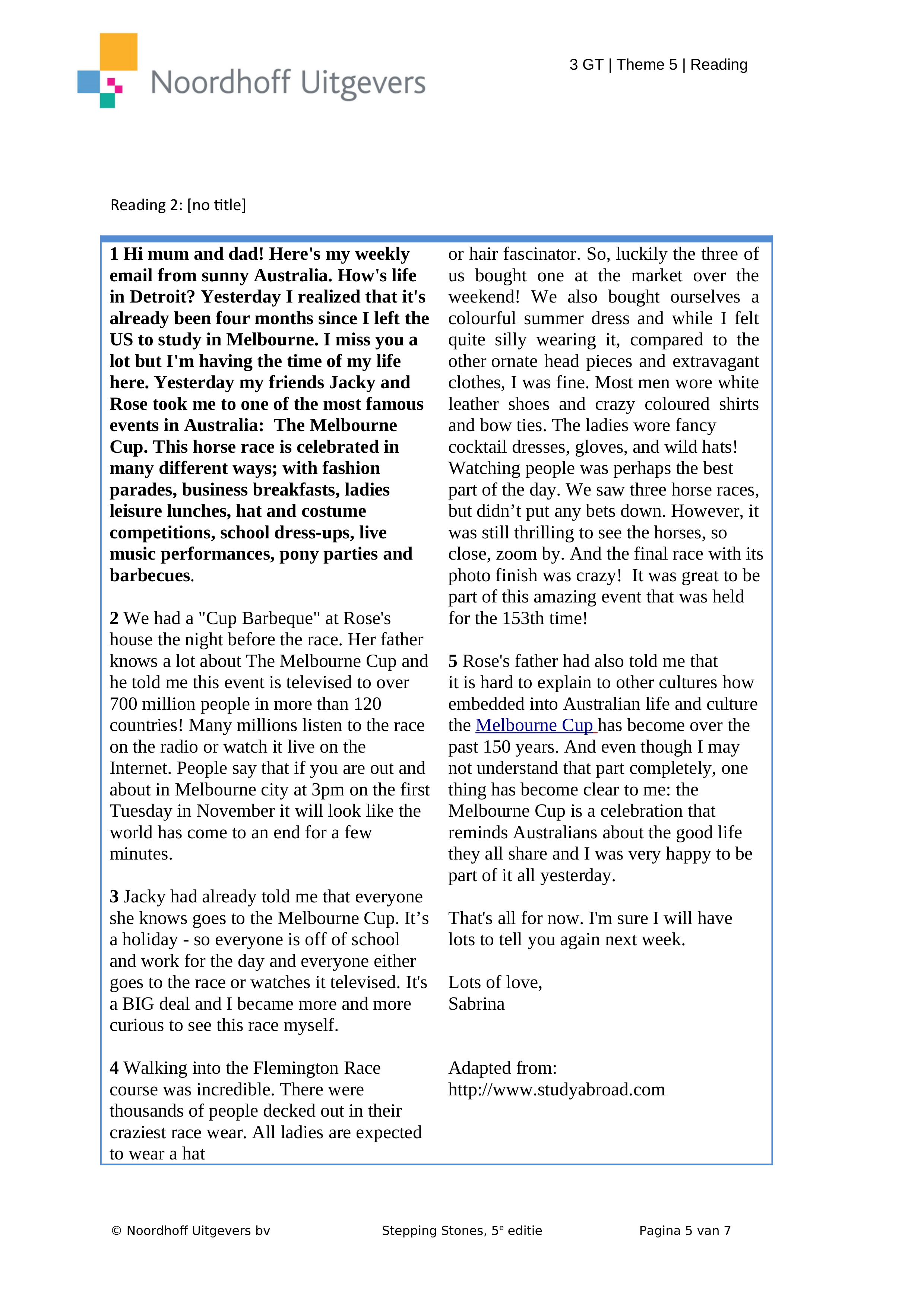 Sabrina got a lot of information about the Melbourne Cup from a friend's father.