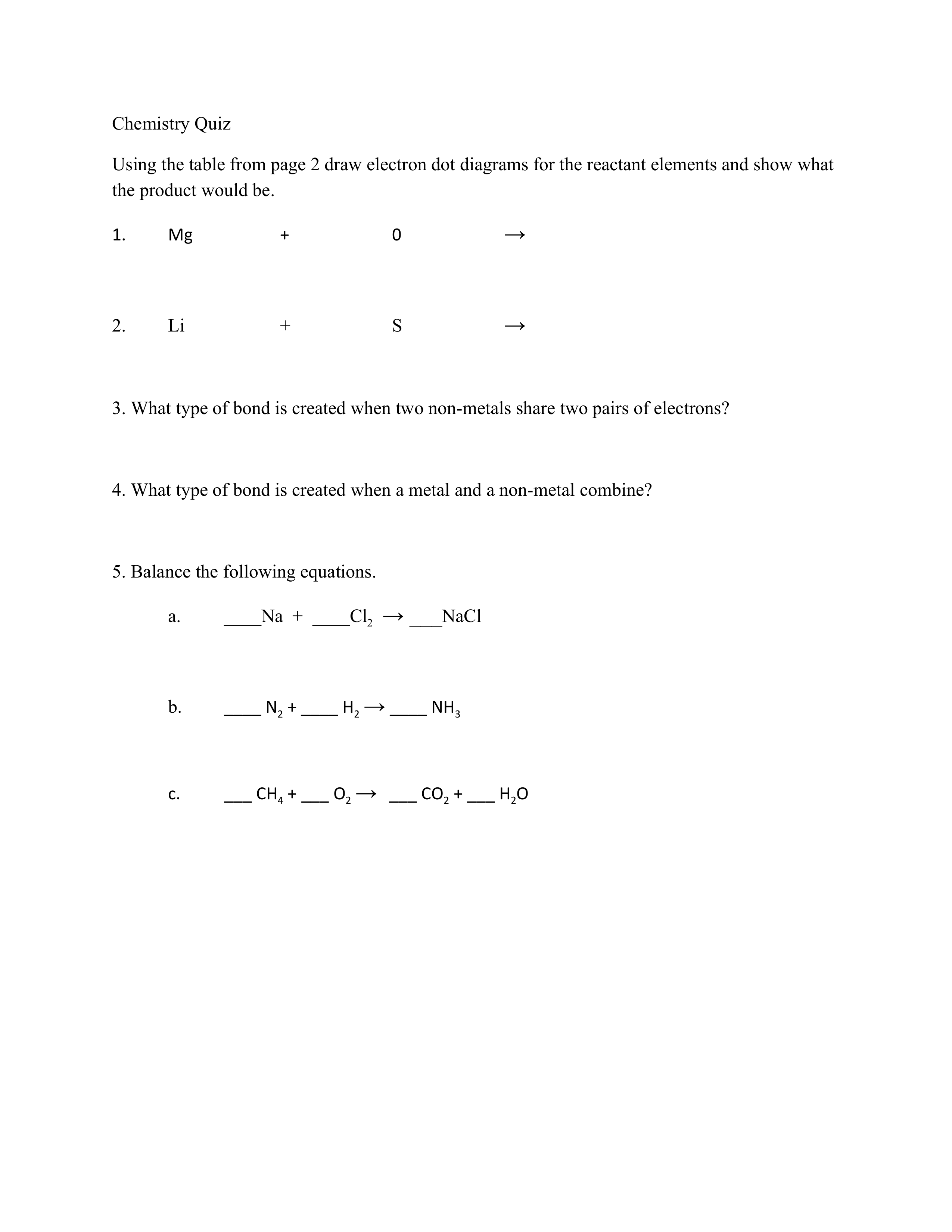 Bond and balance quiz