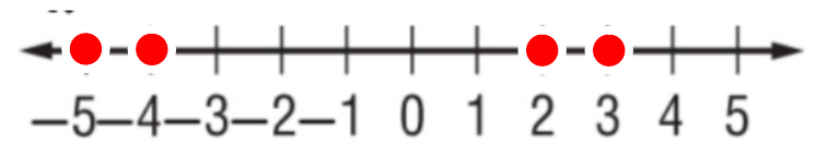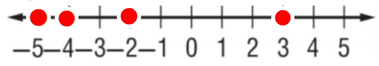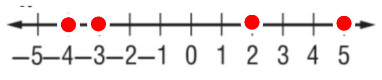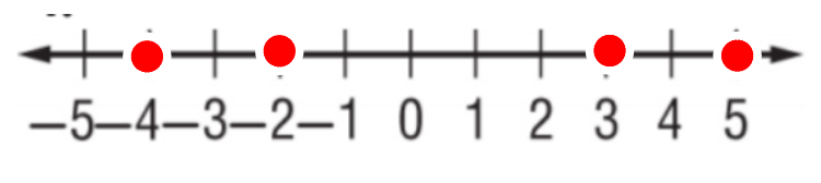 Which graph correctly puts these integers on the number line. {2, -4, 5, -3}