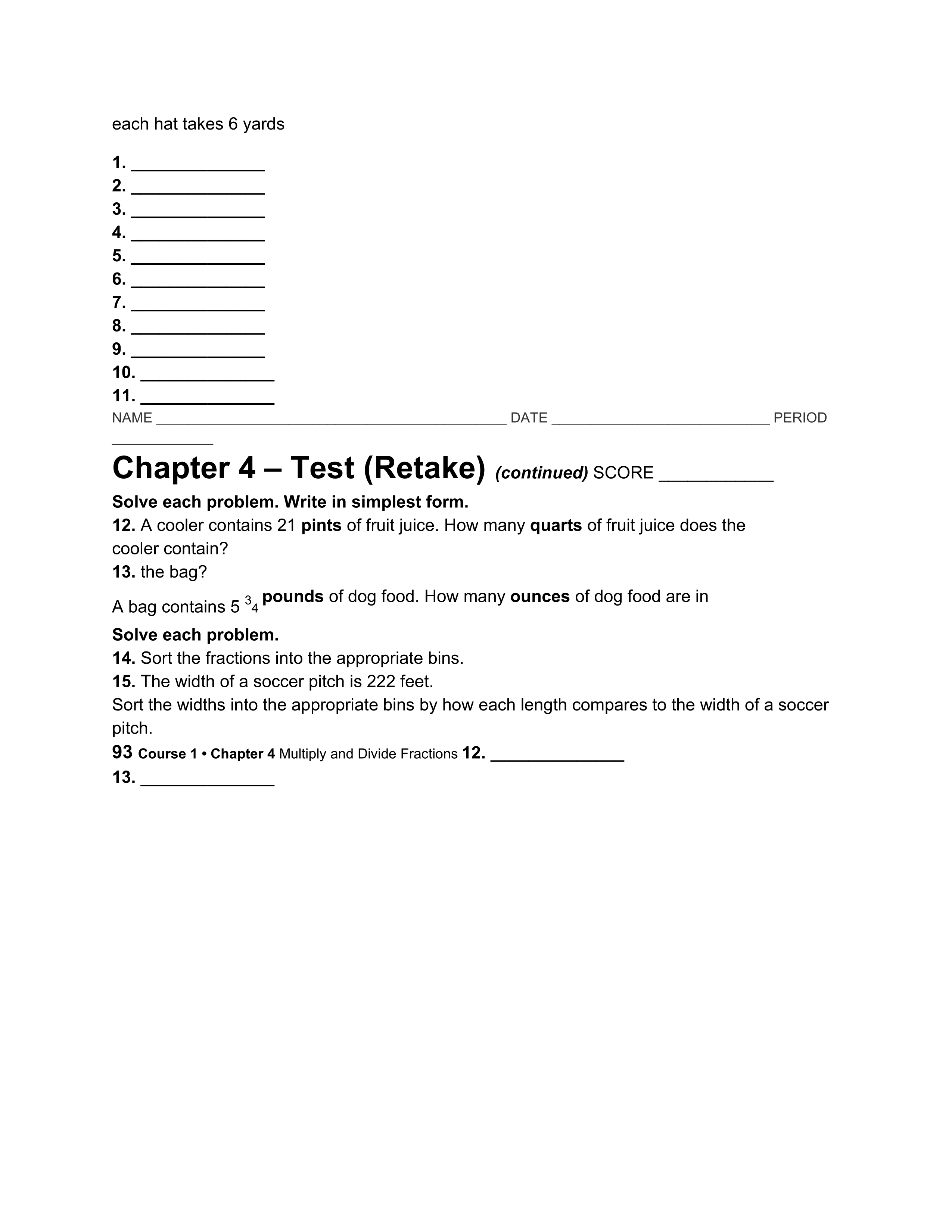 Solve the following problems: Write in simplest form. Sam bought 68 3/4 inches of chain for an art project. How many WHOLE 15 inches chains can he make from it?