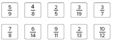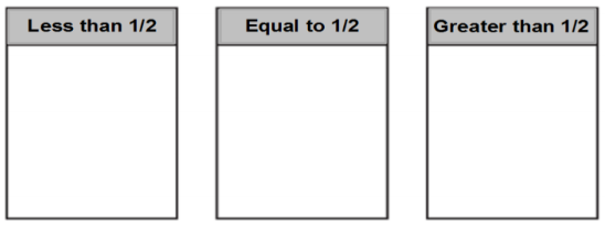 Sort the fractions into the appropriate bins.