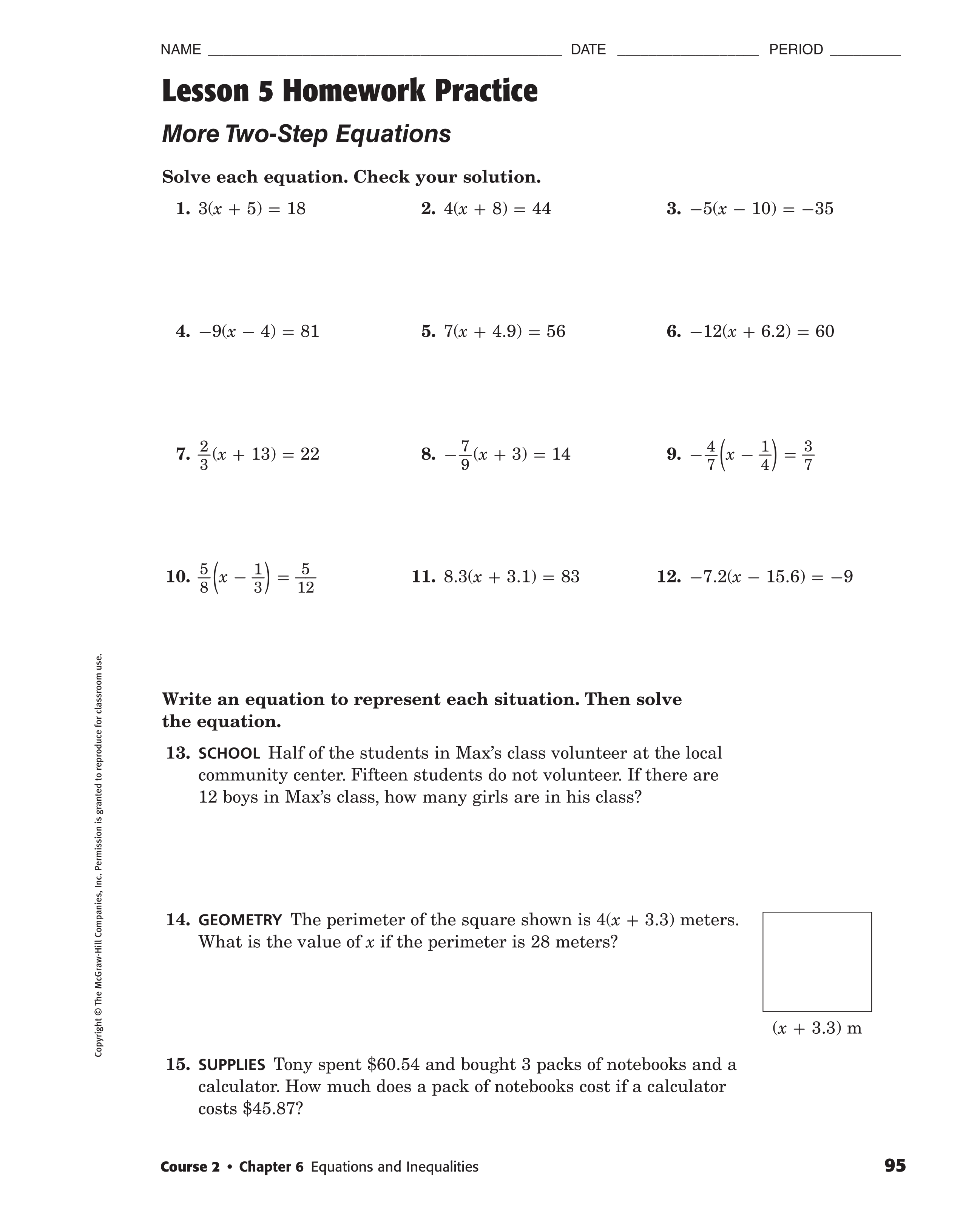 HW #87 Lesson 6.5 (Day 2) Homework Practice WS #2-12 (evens)