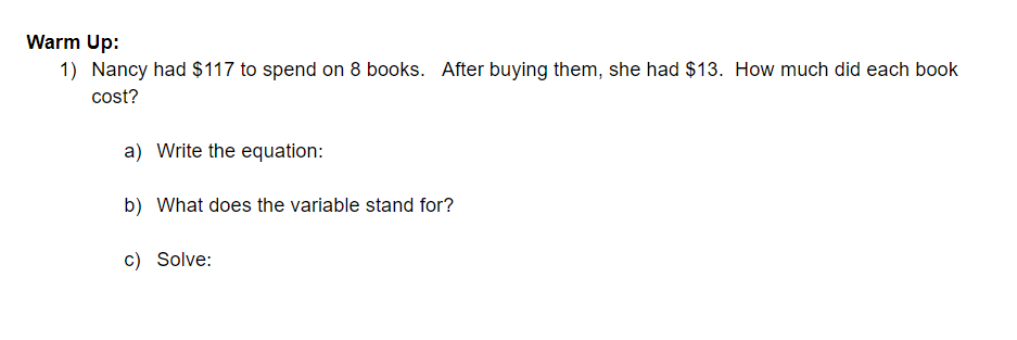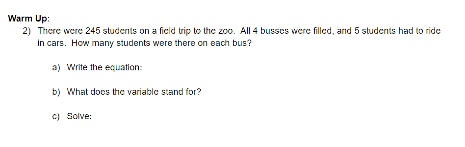GOAL PROBLEMS: how would you write the equation 28 is 7 times b?