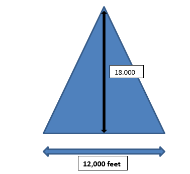 The measurements for a mountain are: from one end of the base till the other is 12,000 feet and its height is 18,000 feet. What is the slope of the mountain? (Think about it!!)