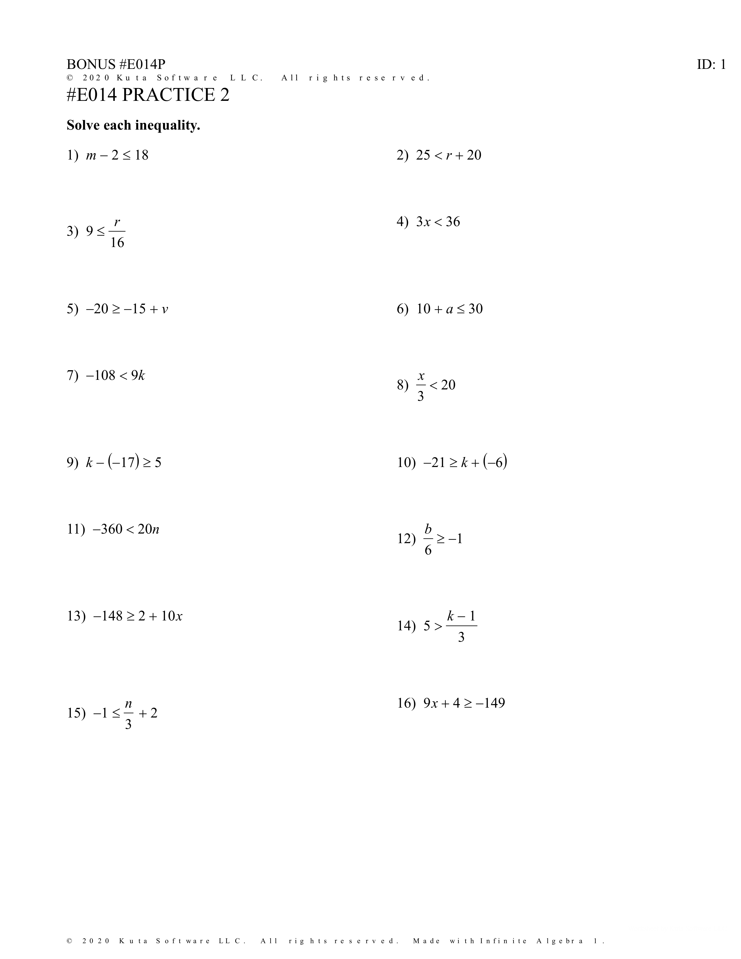 Solve the inequality. reminder the answer has the variable, the inequality and a number.