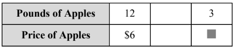 Steve bought 12 pounds of apples for $6. Use the ratio table to find the cost of buying 3 pounds of apples.