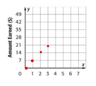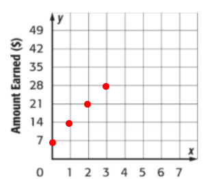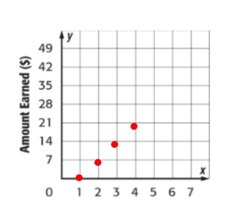 The table shows the amount of money Dawson earned for watching the neighbors cat.Which graph shows the correct graphing of the ordered pairs (number of days, amount earned).