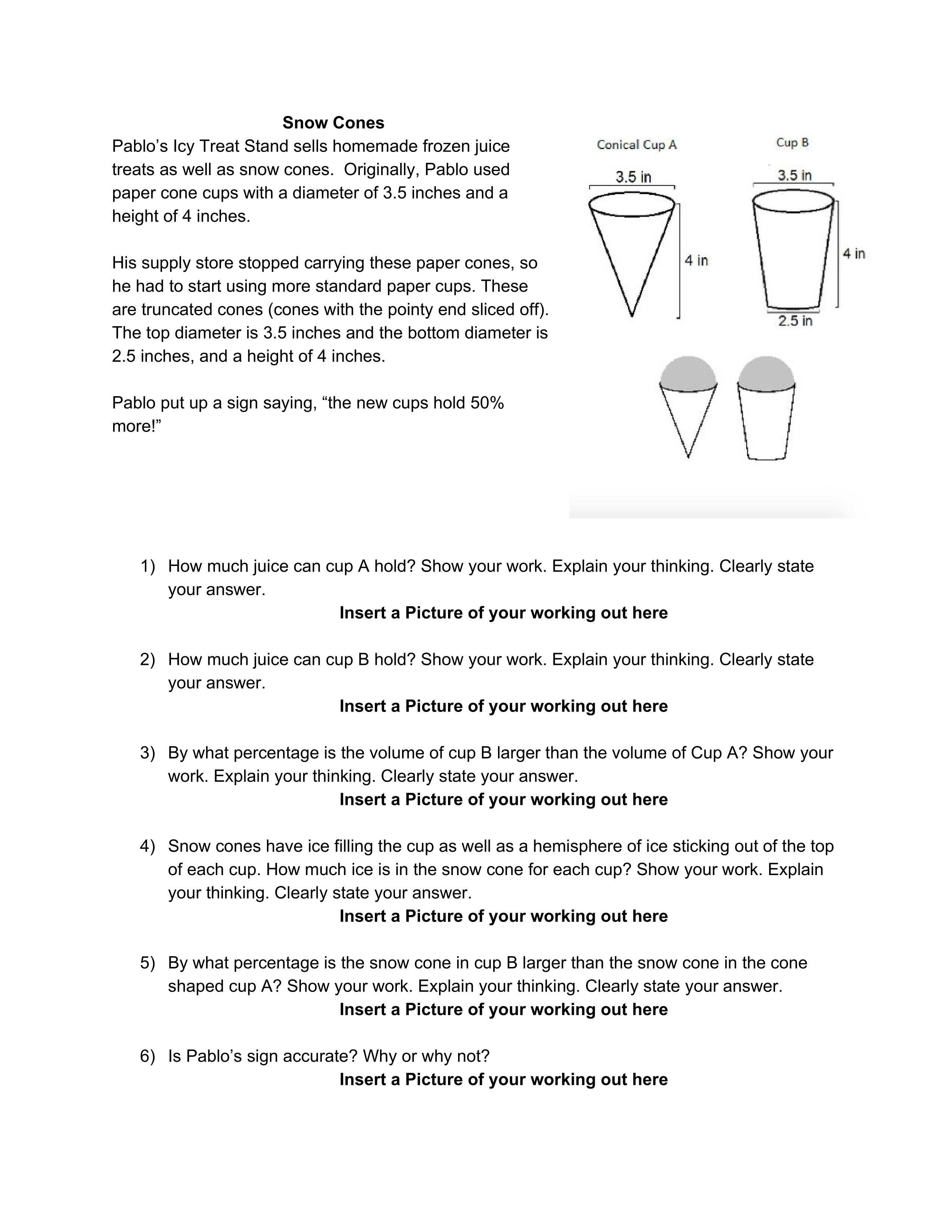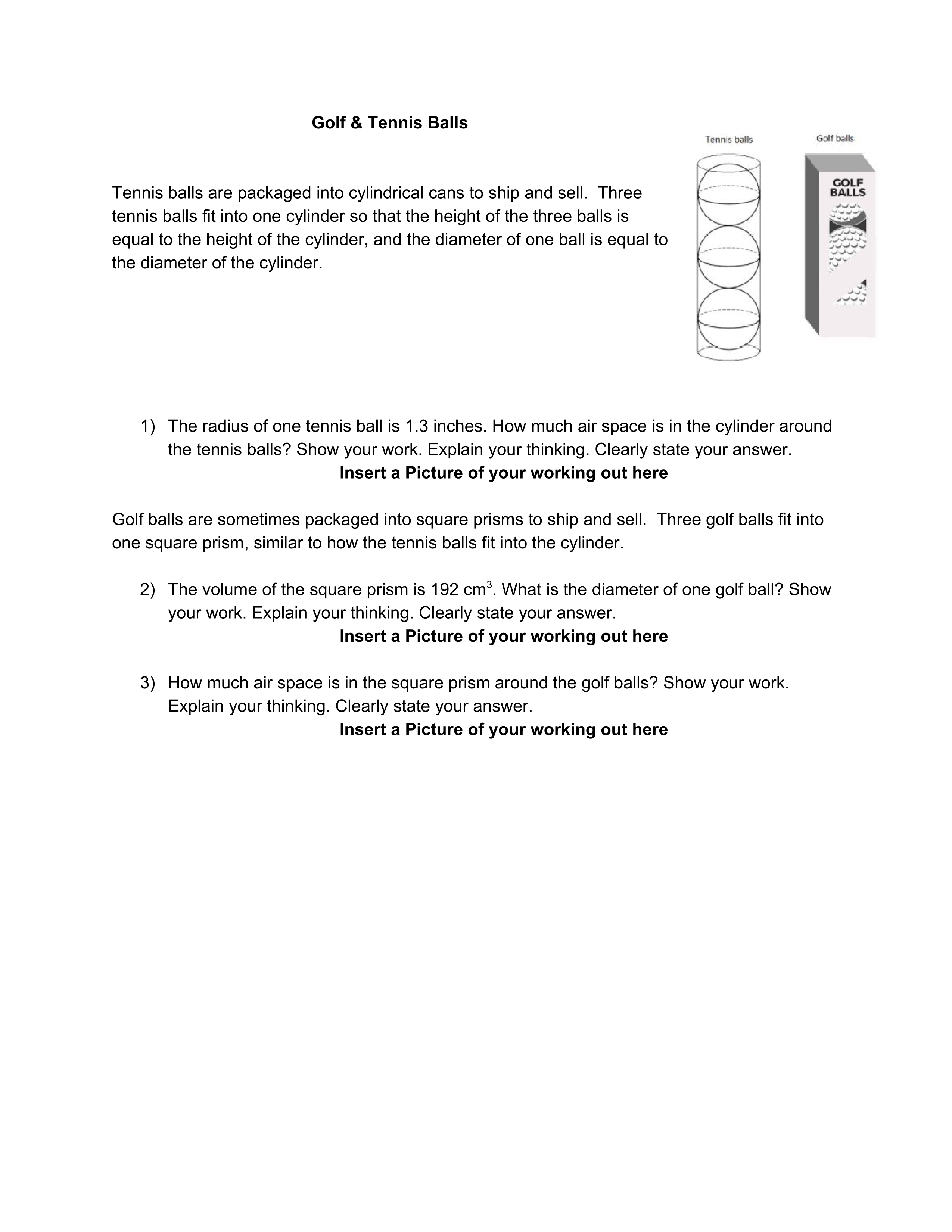 Look through the 4 problems below: The Glasses Problem, Rolled Oats, Snow Cones, Golf and Tennis Balls.